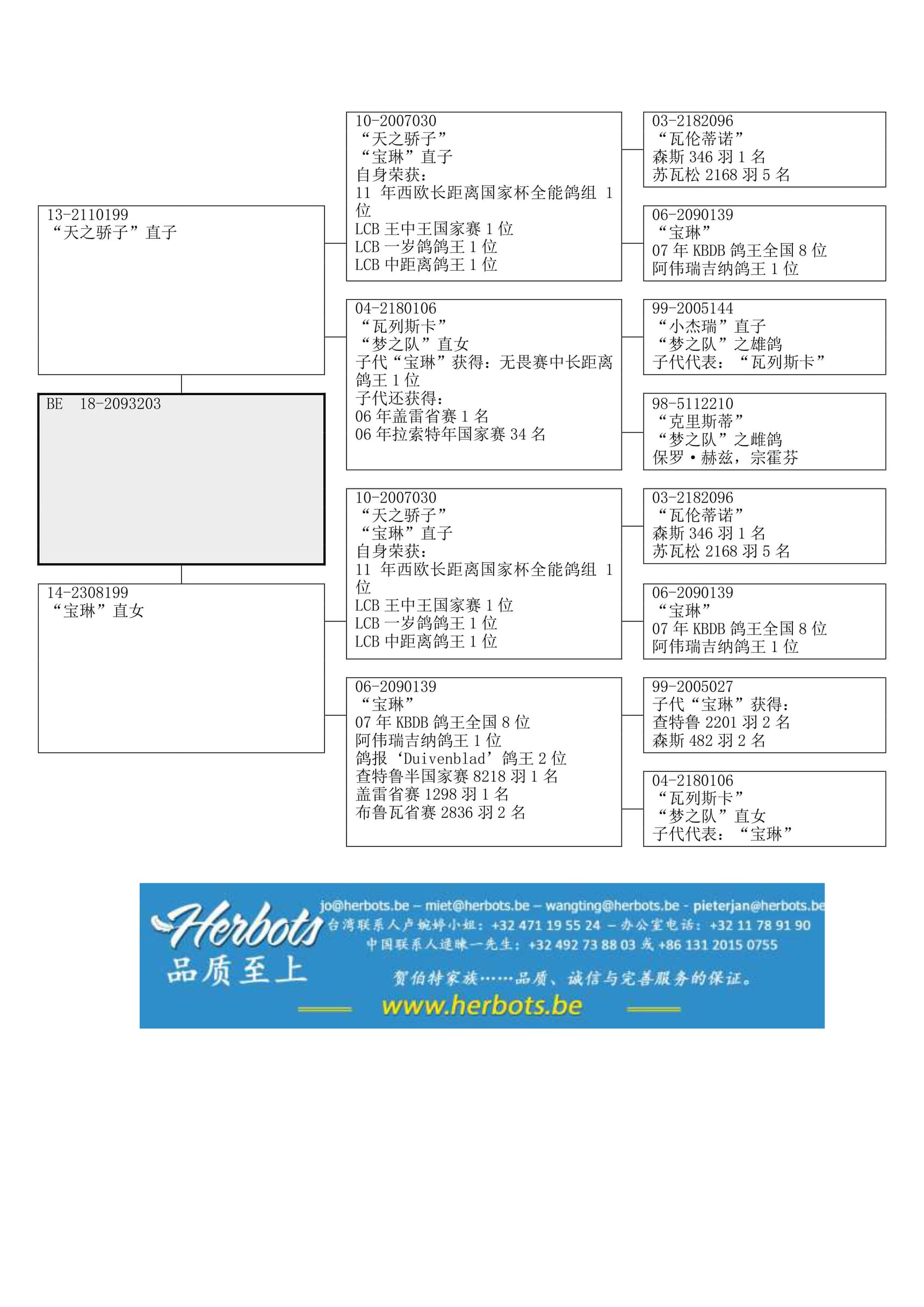 著名鸽王“天之骄子”双重之孙顶级雌鸽“宝琳”之孙
