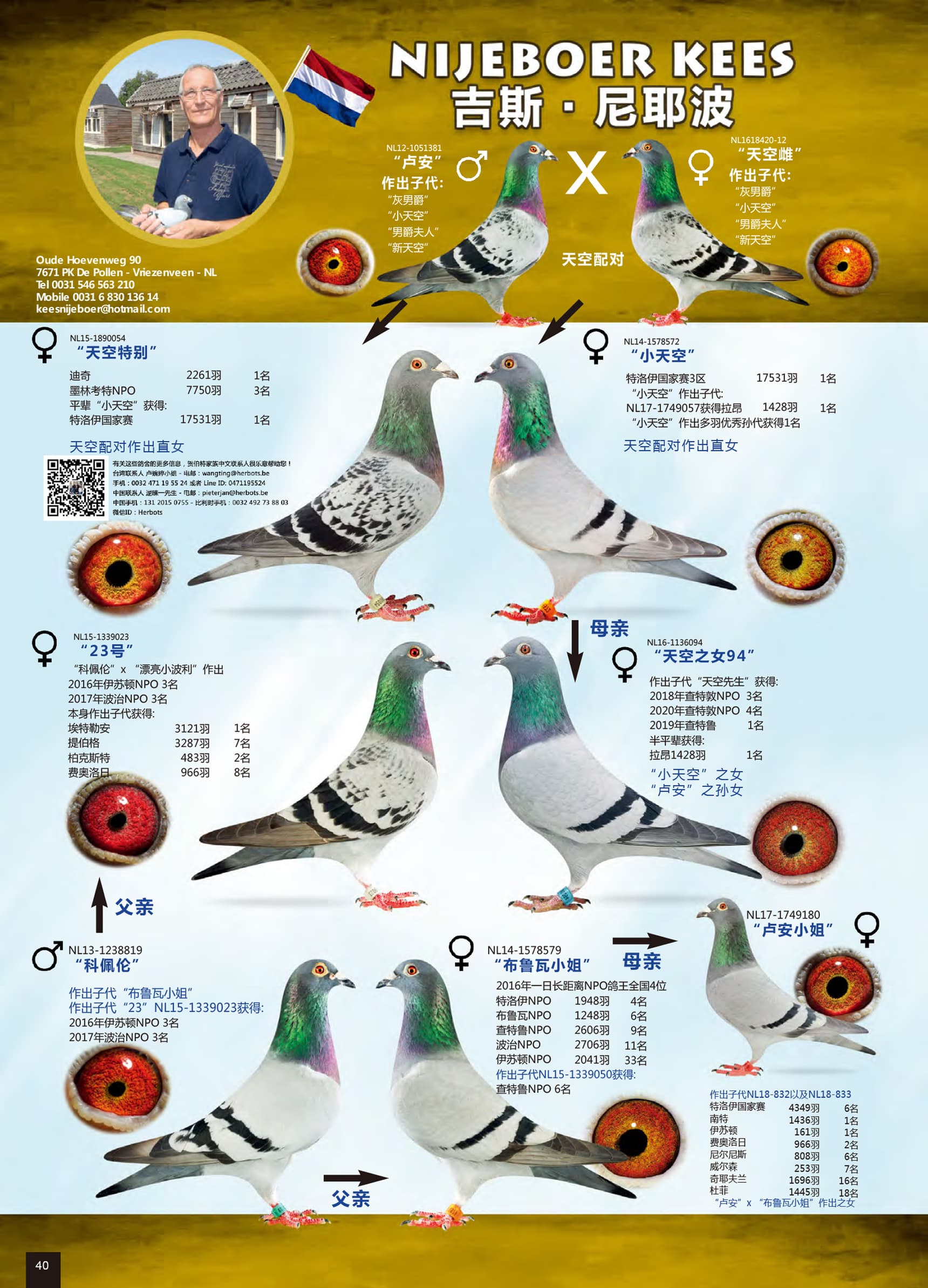 荣获: 鸽王全国8位, 12位, 14位 以及21位