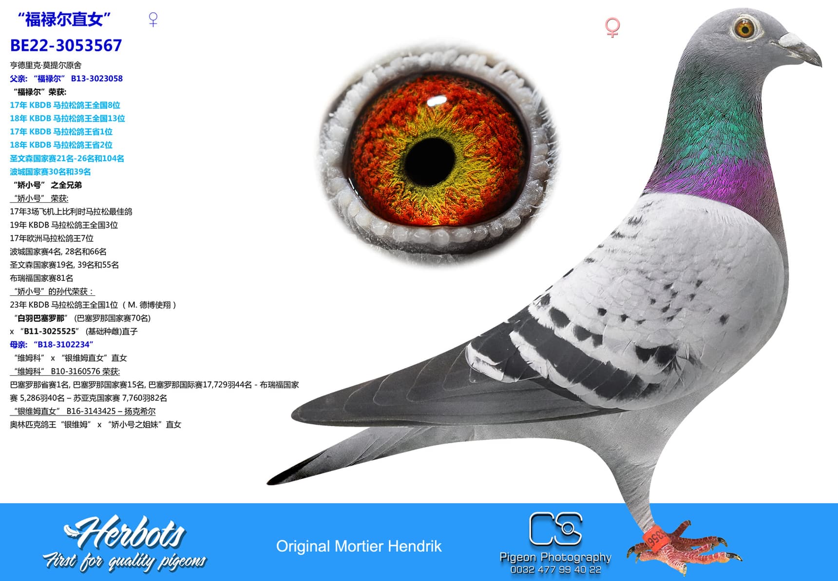 铭鸽 “福禄尔” x “B18-3102234”作出