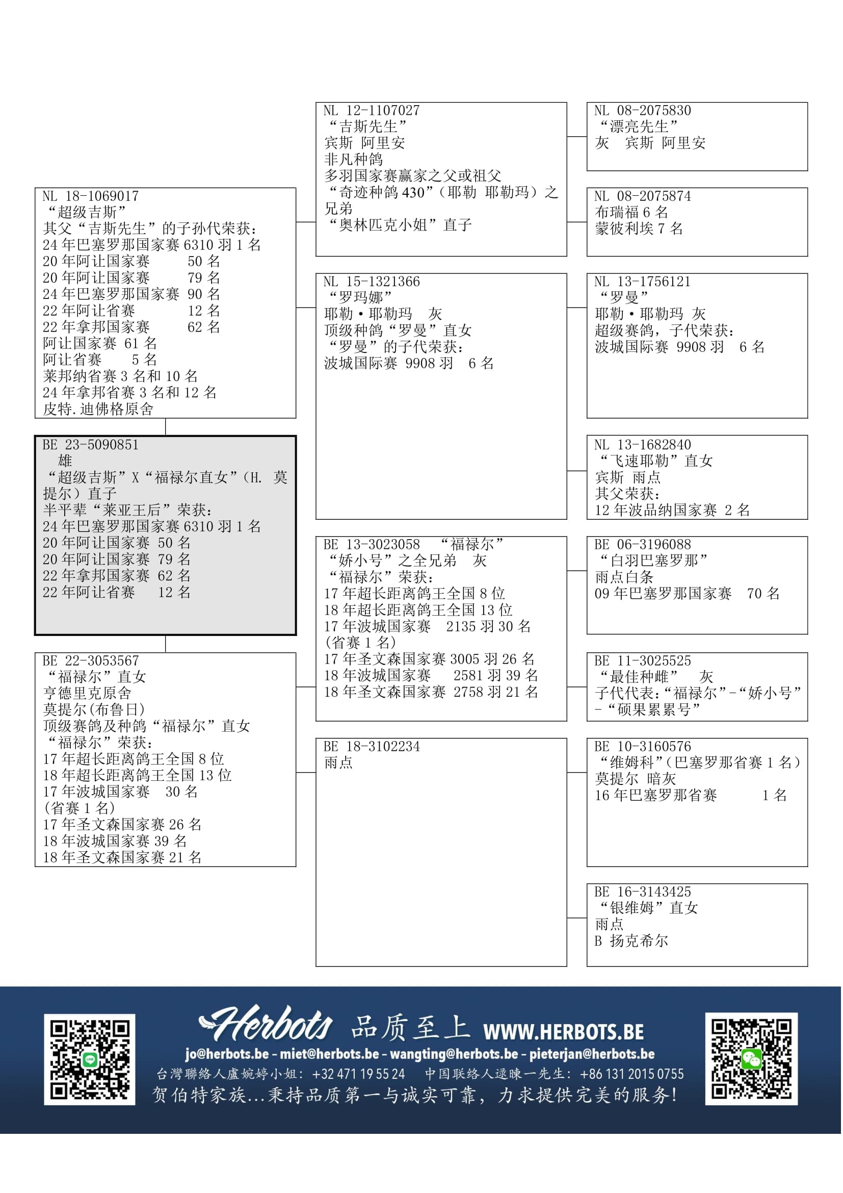 “吉斯先生” (耶勒 耶勒玛的著名种鸽“奇迹种鸽 430”之全兄弟) x “NL15-1321366 (耶勒 耶勒玛原舍;是12年波品纳国家赛2名直孙女;是波城国际赛6名之半姐妹)作出