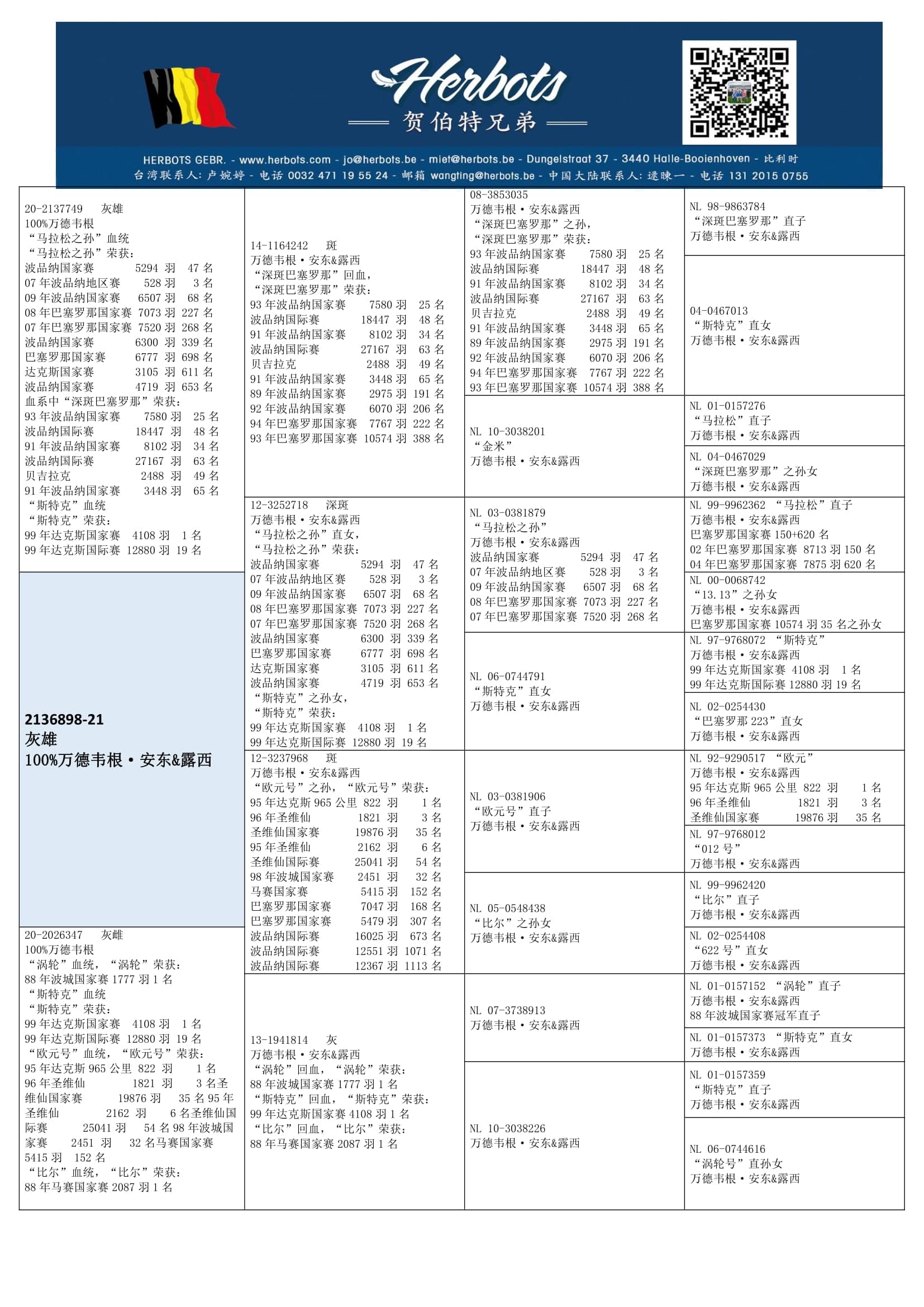 作育者: 100% VAN DER WEGEN A. & L. 100% 纯范德维根血系