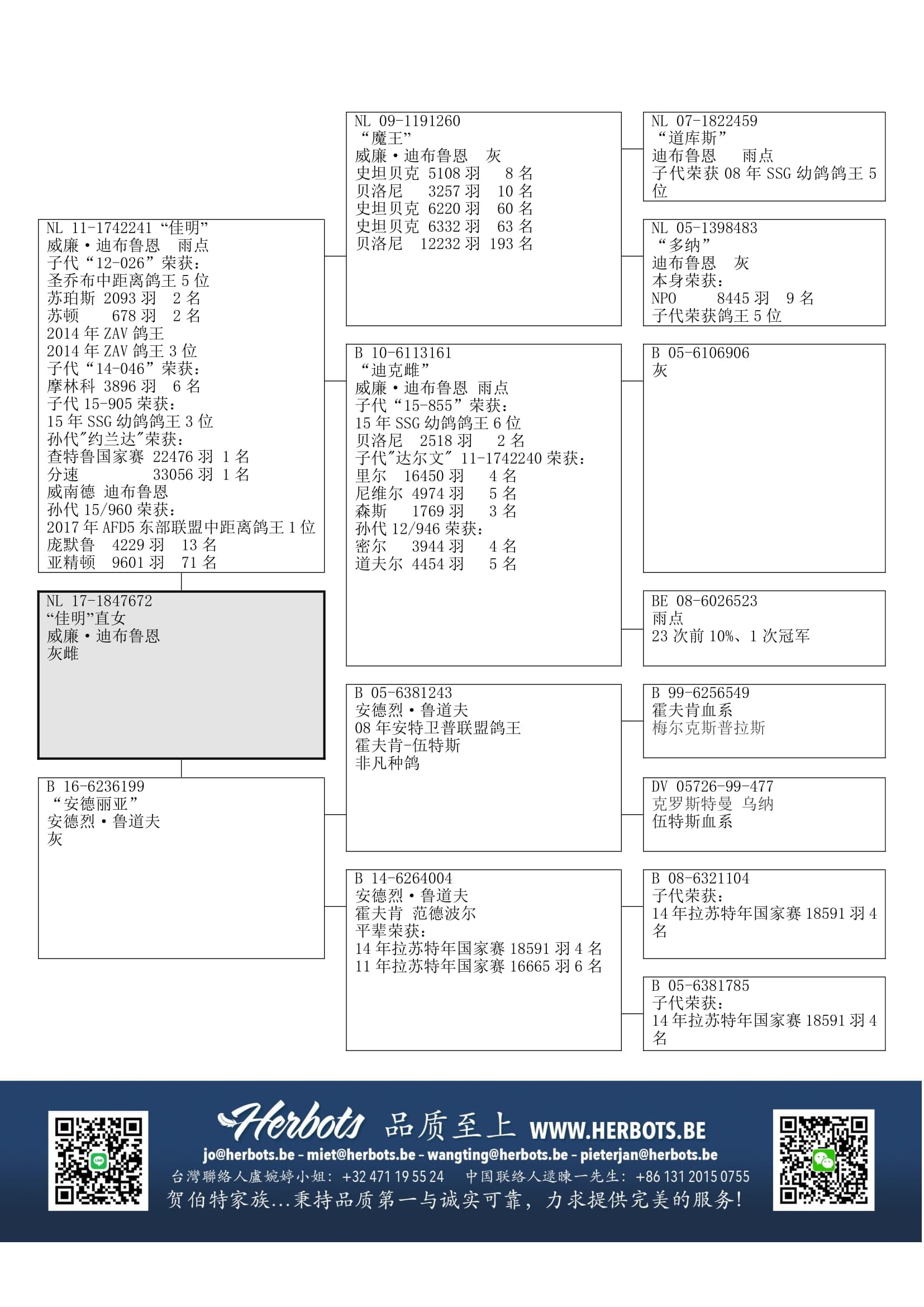 “B05-6381243” (2008年安特卫普联盟鸽王1位- 鸽系: 霍夫肯 x 伍特斯) x “B14-6264004” (全平辈荣获:拉苏特年国家赛 18,591羽4名 – 拉苏特年国家赛16,665羽6名 - 鸽系: 霍夫肯-范德波尔)作出