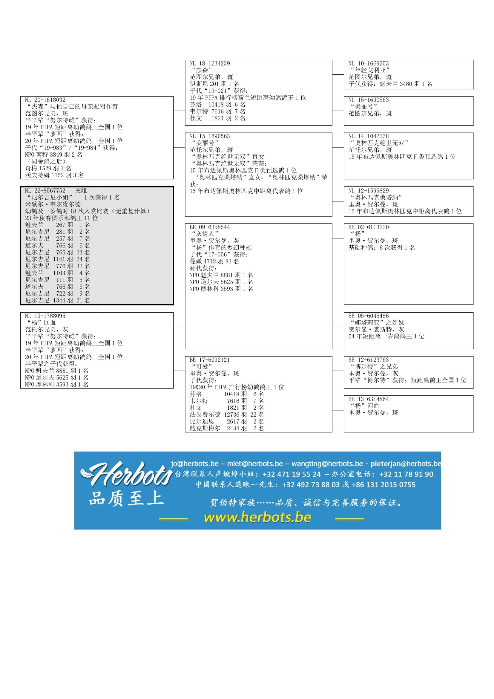 100%里奥·贺尔曼 –种鸽鸽系 “博尔特”, “杨”, “纳塔莉亚