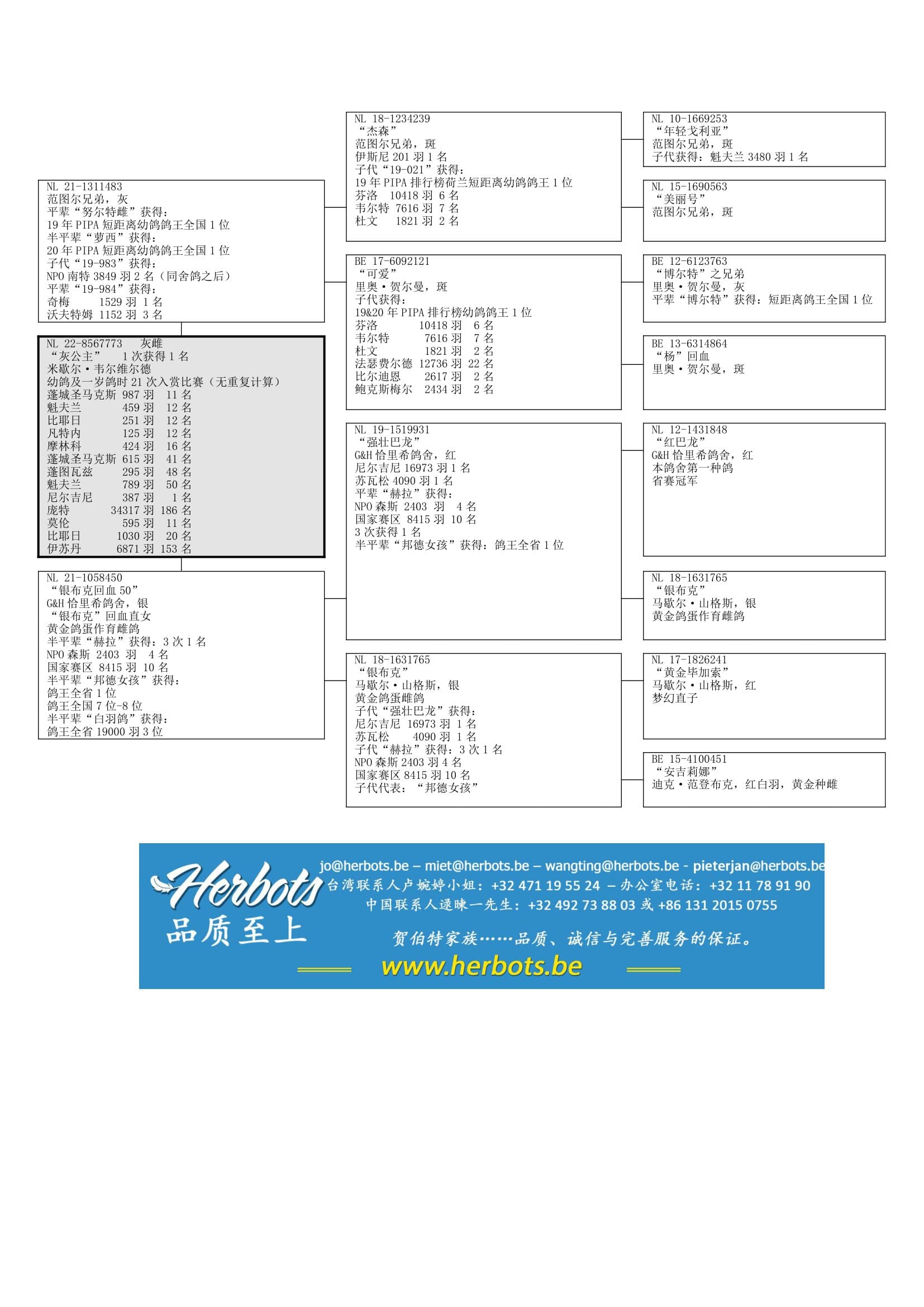 无重复计算,幼鸽及一岁鸽时21次入赏比赛