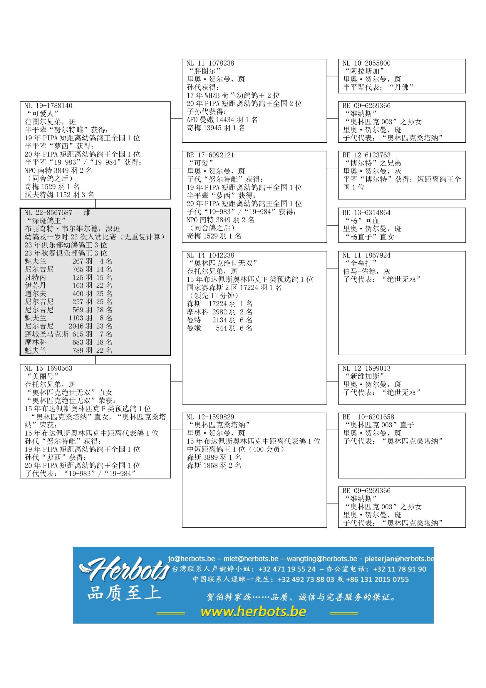 幼鸽及一岁鸽时22次入赏比赛--12次入赏前1/10