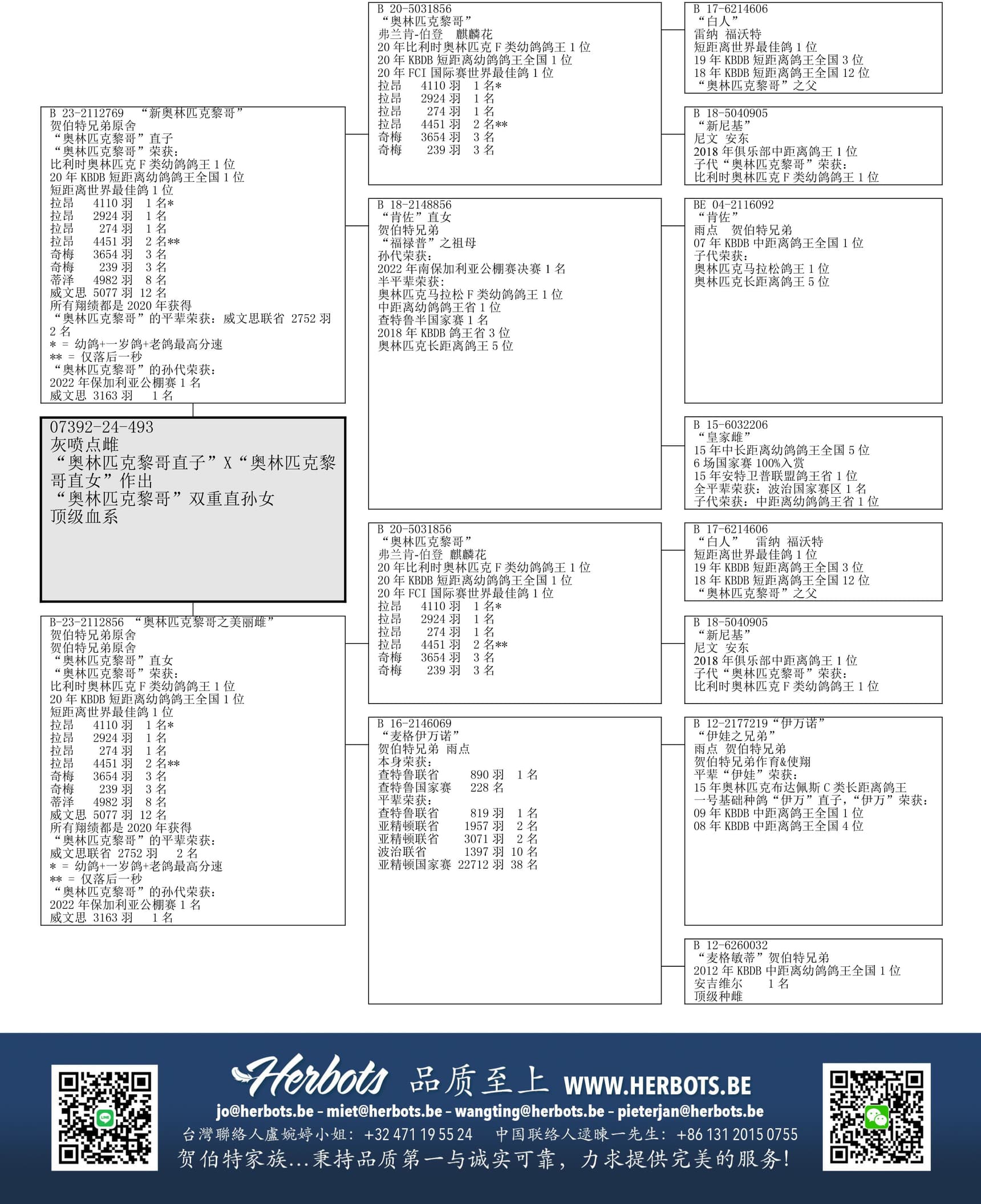世界铭鸽“奥林匹克黎哥” B20-6031856双重直孙女