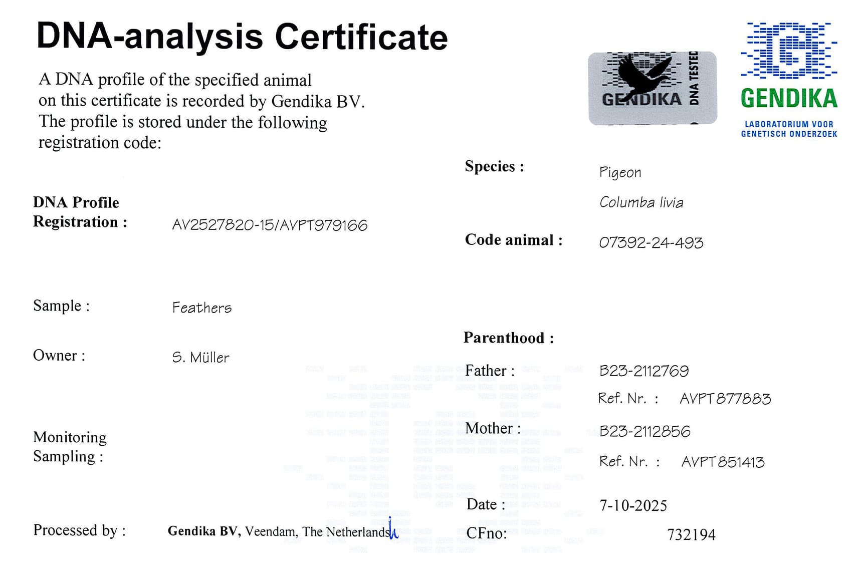 “麦格伊万诺” (KBDB幼鸽鸽王全国1位直女)作出