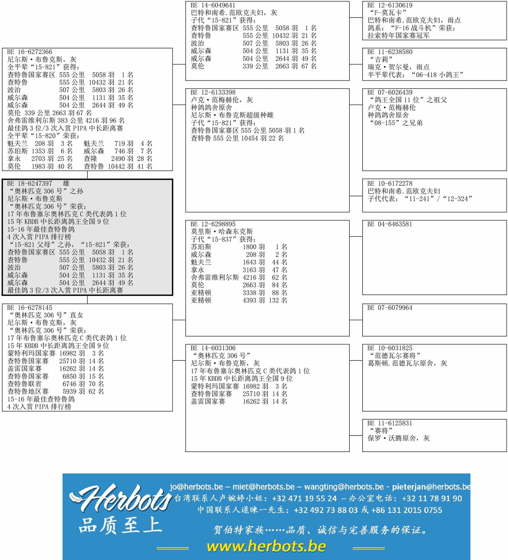 父亲:查特鲁国家赛区冠军之全兄弟”全平辈获得:查特鲁国家赛区 5058羽  1名查特鲁国家赛  10454羽 22名