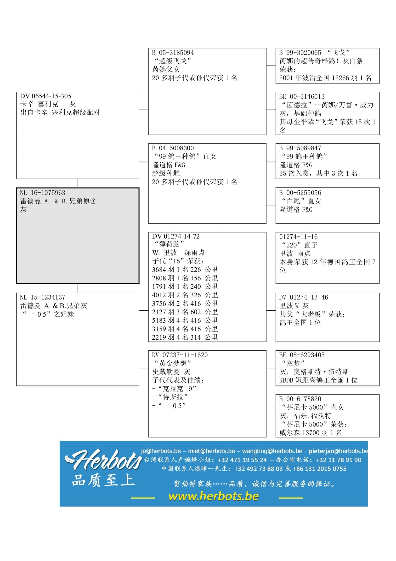 “飞戈直子” x “鸽王直女” (这个配对的子孙代荣获20 次1名 )作出