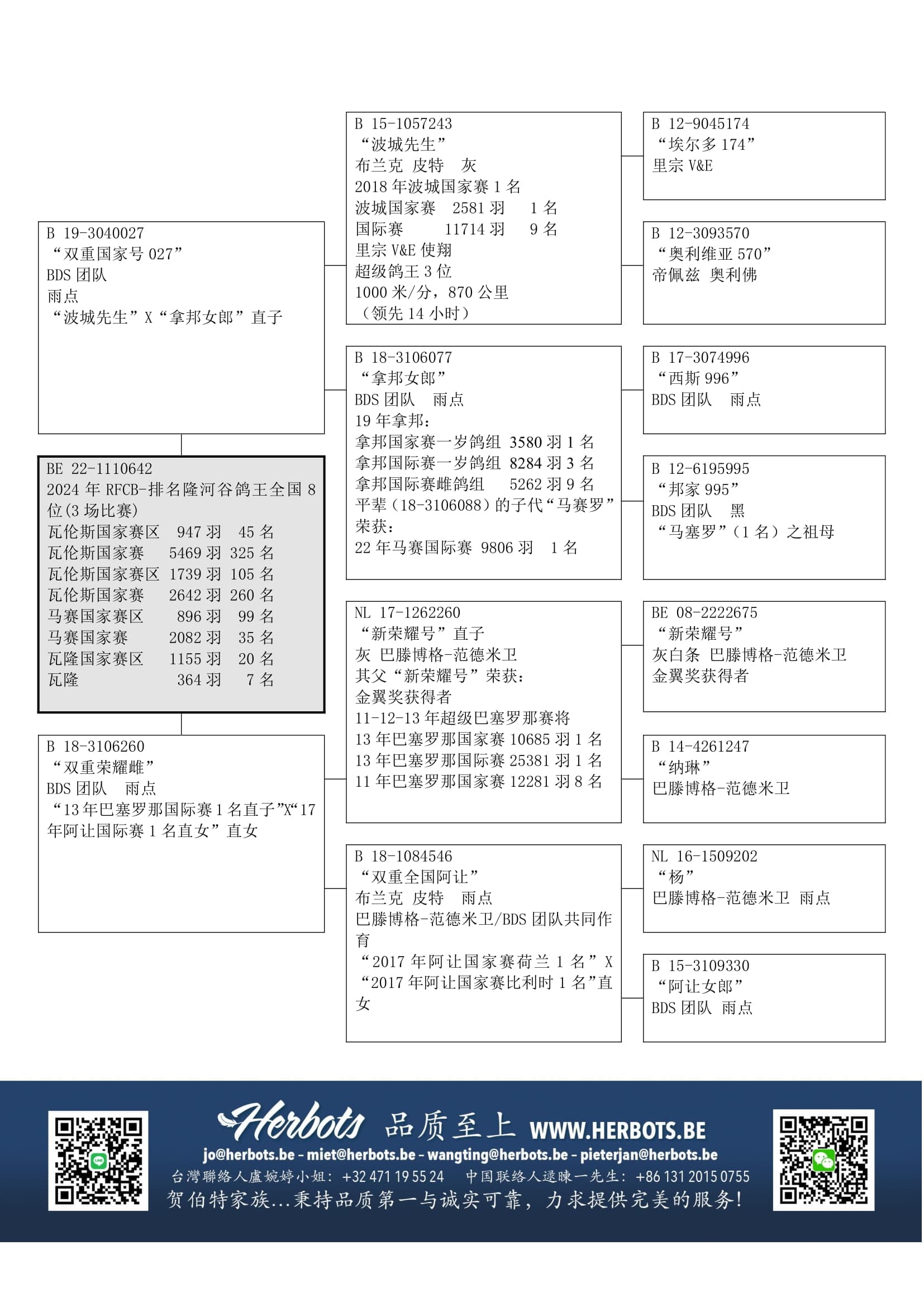 “新荣耀号直子” (“新荣耀号” 荣获巴塞罗那国际赛 25,382羽1名) x “B18-1084546”(17年阿让国际赛雌鸽组1名直女)作出