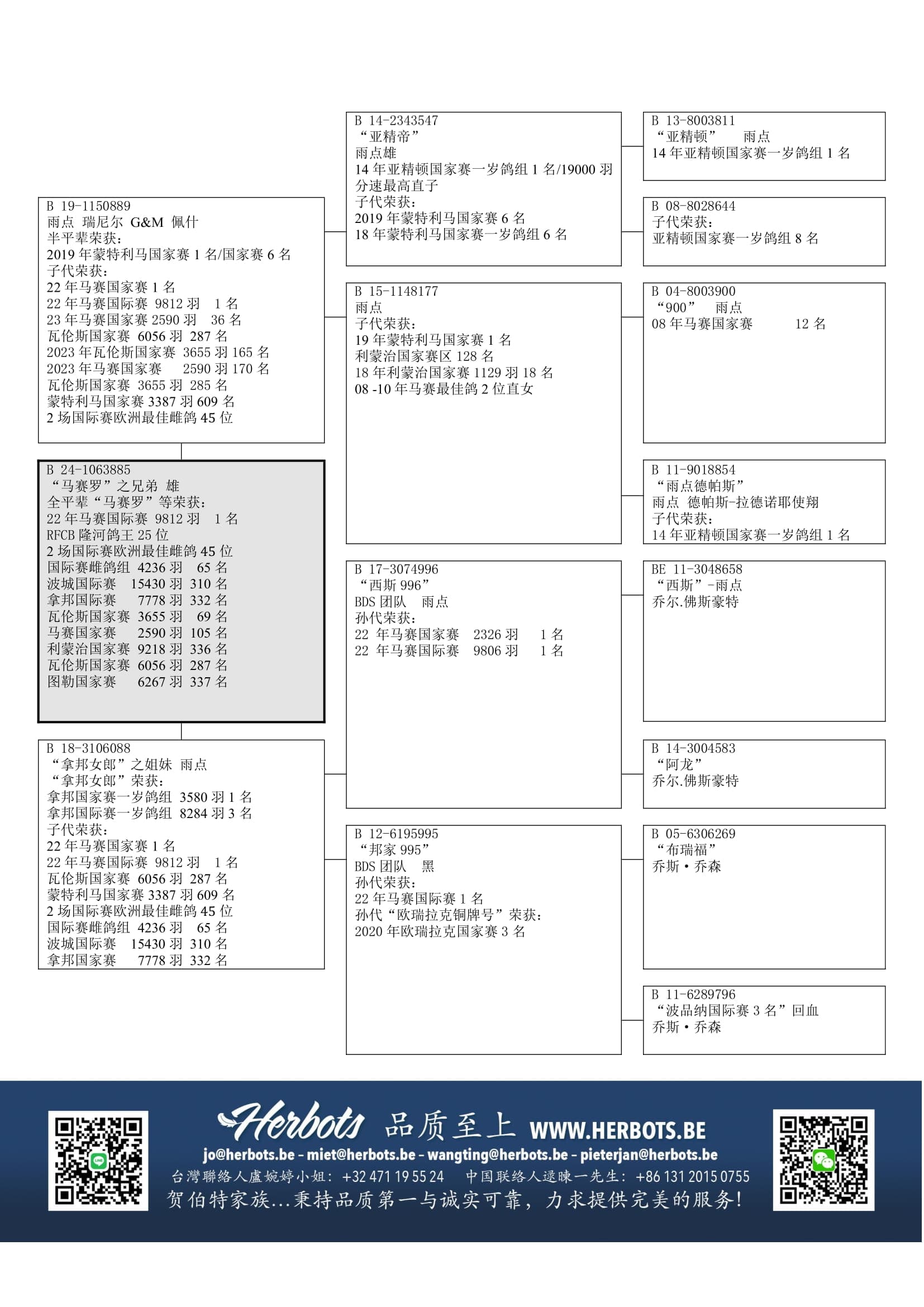 “B14-2343547” (亚精顿国家赛1名/分速19,000多羽1名直子) x “B15-1148177” (08年马赛国家赛12名直女)作出