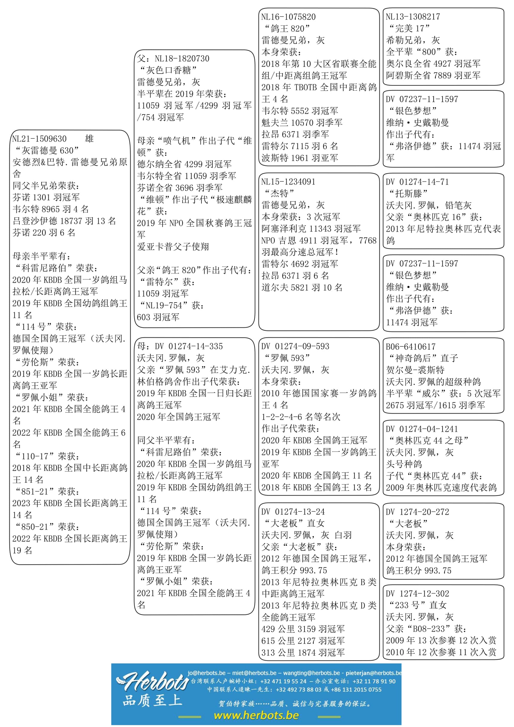 同父半平辈荣获:芬诺1301羽冠军-韦尔特8965羽4名-吕登沙伊德18737羽13名-芬诺220羽6名