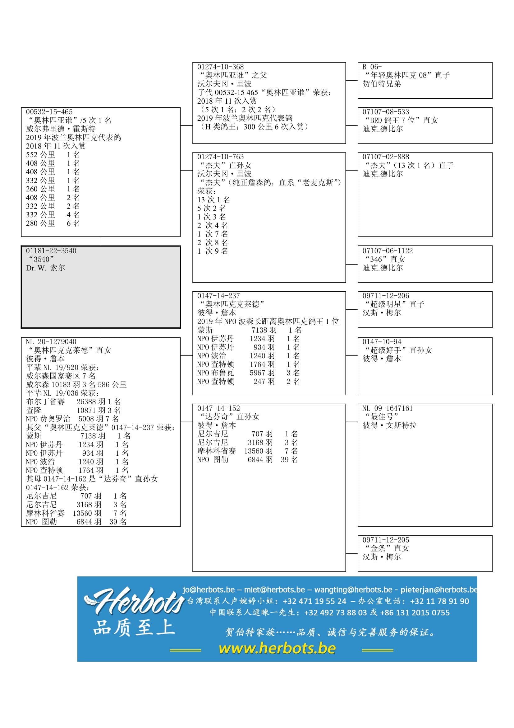 鸽系: 贺伯特兄弟 (血系“年轻奥林匹克08”和“泰山”) x 迪克·德比尔(德国雌鸽王7位直女)