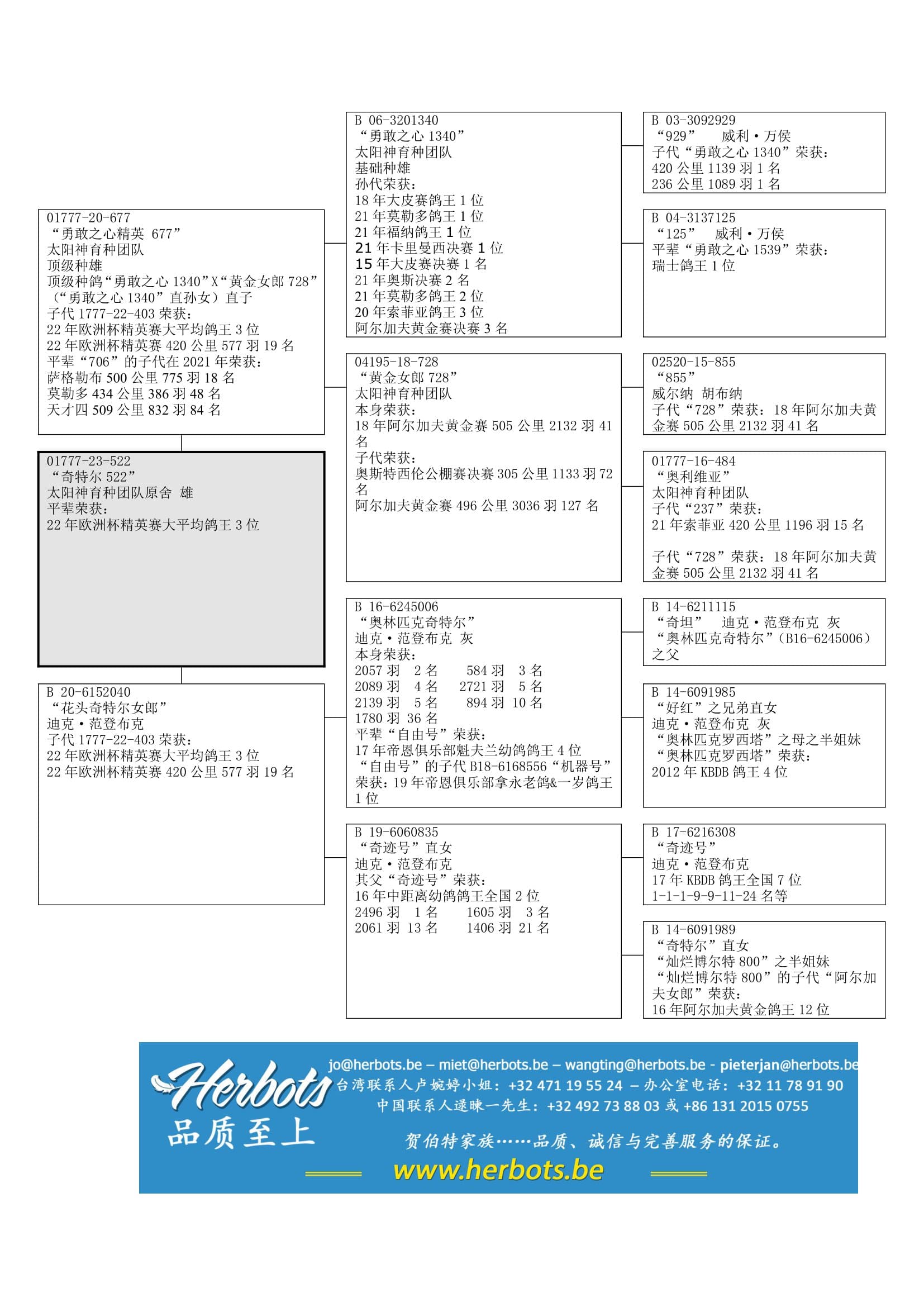 “勇敢之心 1340” (威利·万侯原舍 - 孙代荣获: 3 羽不同的鸽王1位以及2 羽不同的公棚赛决赛1名赢家) x “勇敢之心 1340直孙女” (荣获2018年阿尔加夫黄金公棚赛 – 2,132羽41名)直子