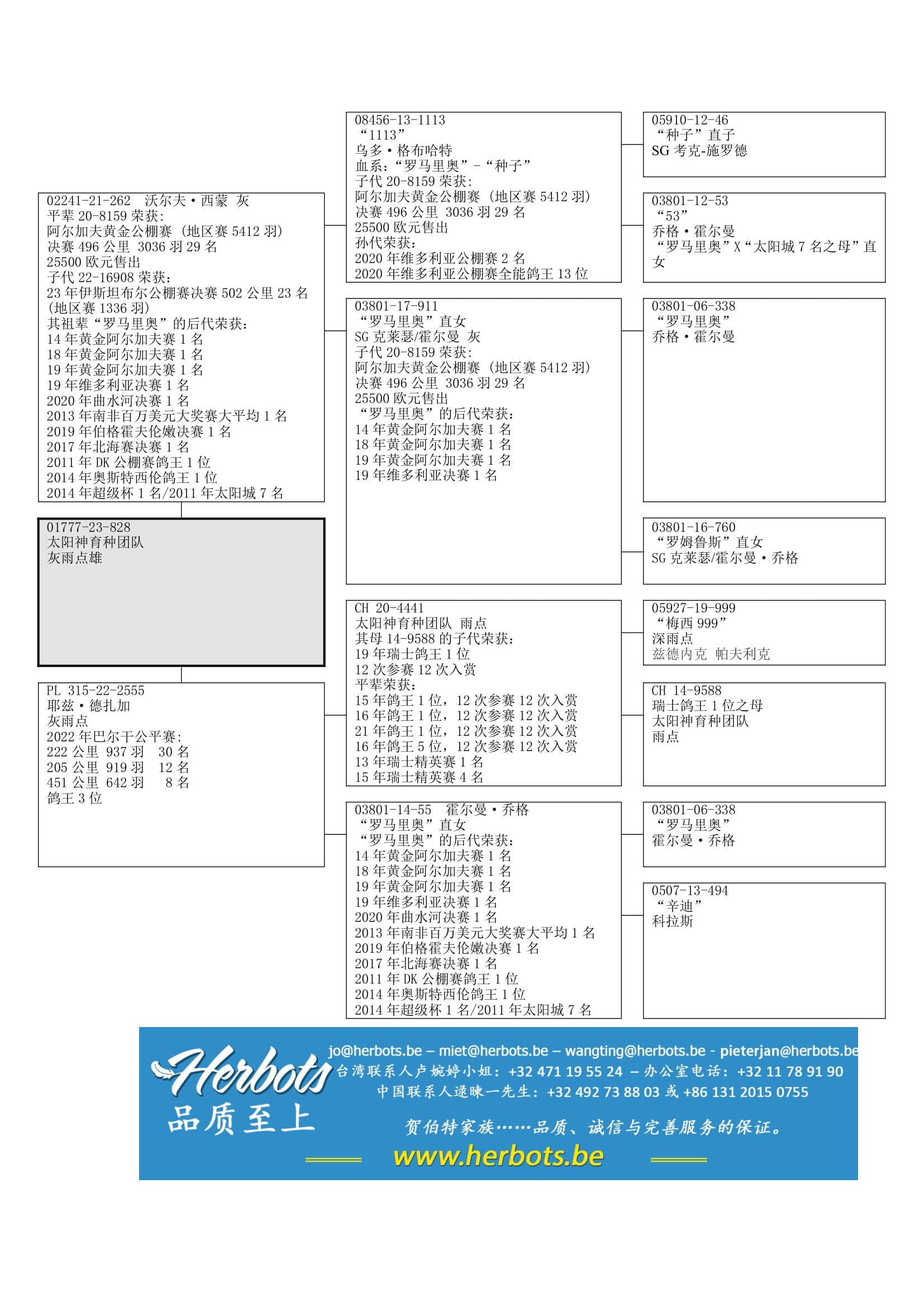鸽王3位 – 642羽8名 (451公里) – 919羽12名 (205公里) – 937羽30名 (222公里)
