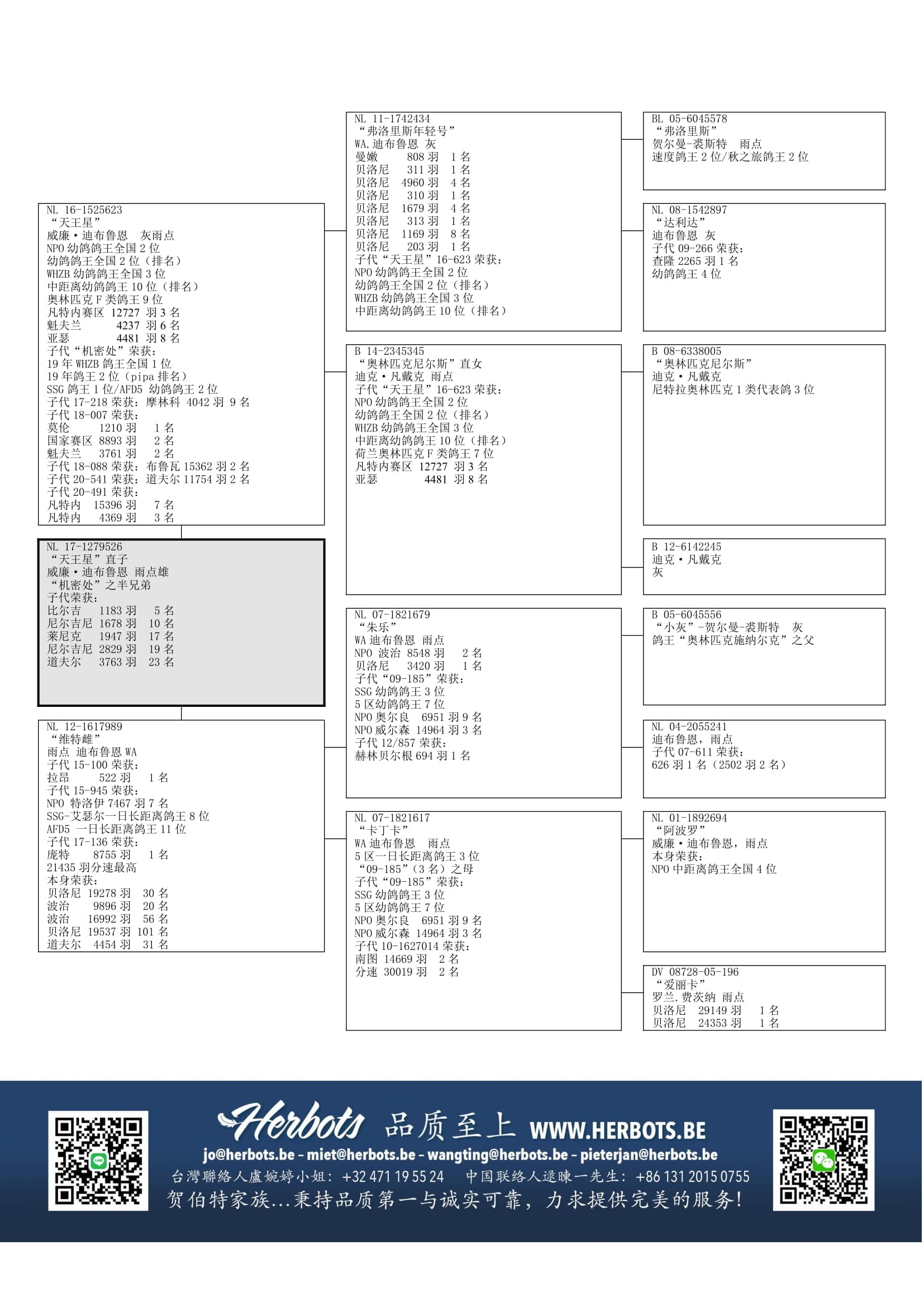 “朱乐” (贝洛尼 3,420羽1名 – NPO 波治8,548羽2名) x “卡丁卡” (“Afd 5”长距离鸽王3位 – 是NPO中距离鸽王全国4位的“阿波罗”直女)作出