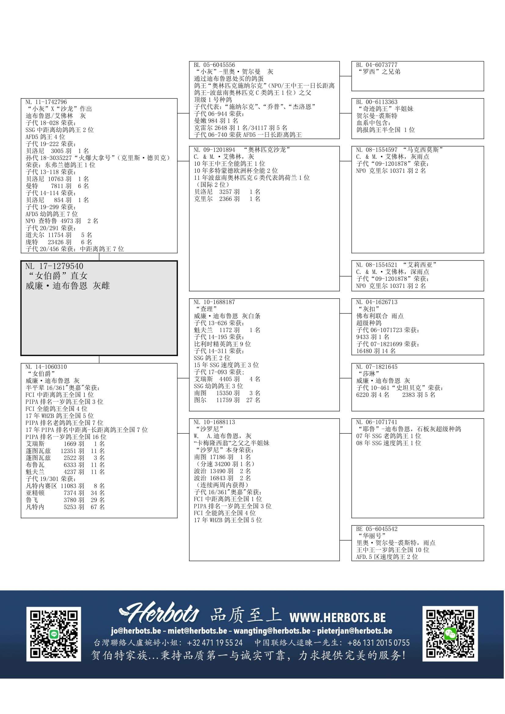 “阿米列”(2013年WHZB最佳雌鸽18位)之父