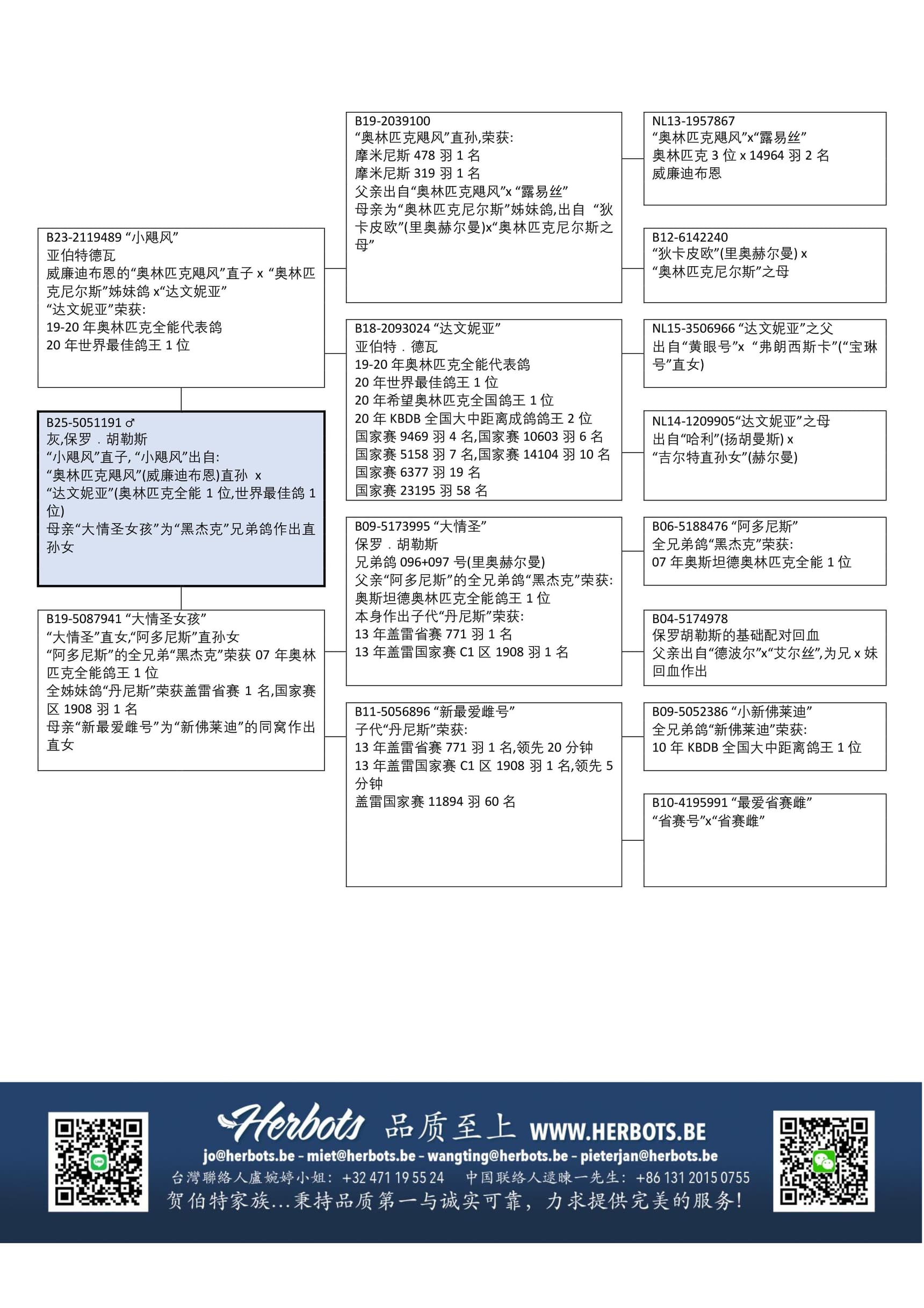 为世界名鸽 “奥林匹克飓风” (威廉迪布恩原舍)和 “狄卡皮欧” (里奥赫尔曼)的直孙