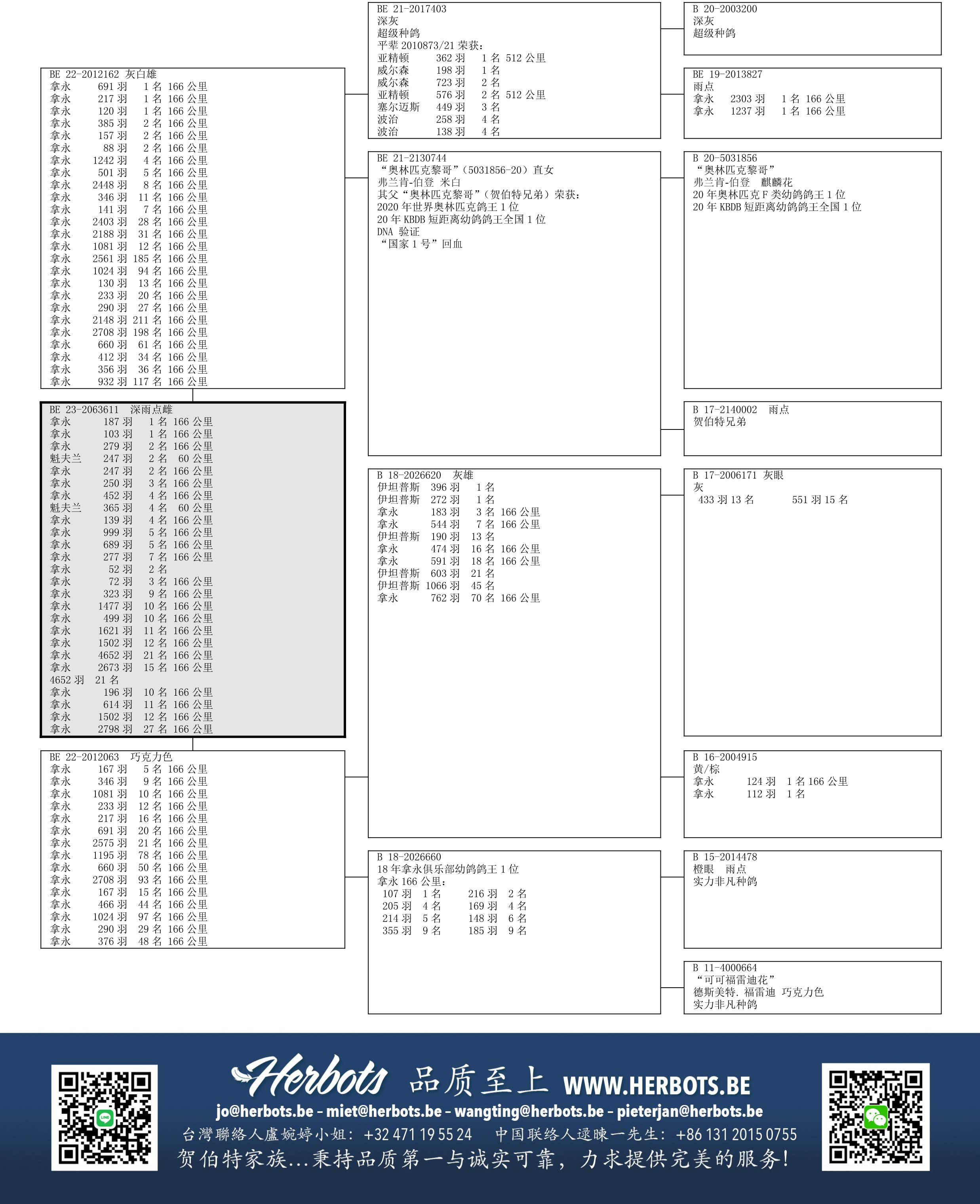 荣获: 167羽5名 – 346羽9名 – 1,081羽10名 等等