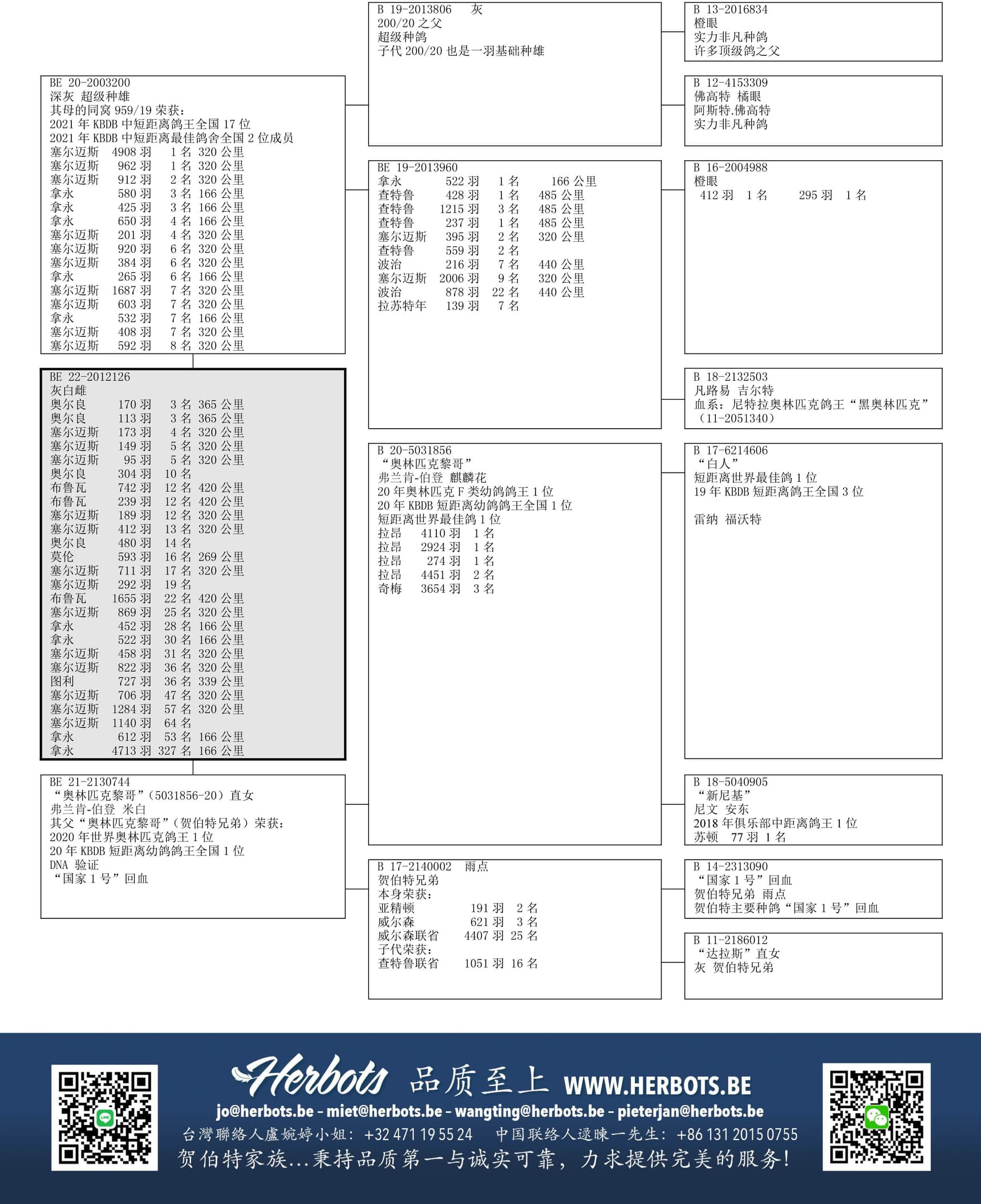 2020年FCI短距离世界最佳鸽1位 (老鸽+一岁鸽+幼鸽)