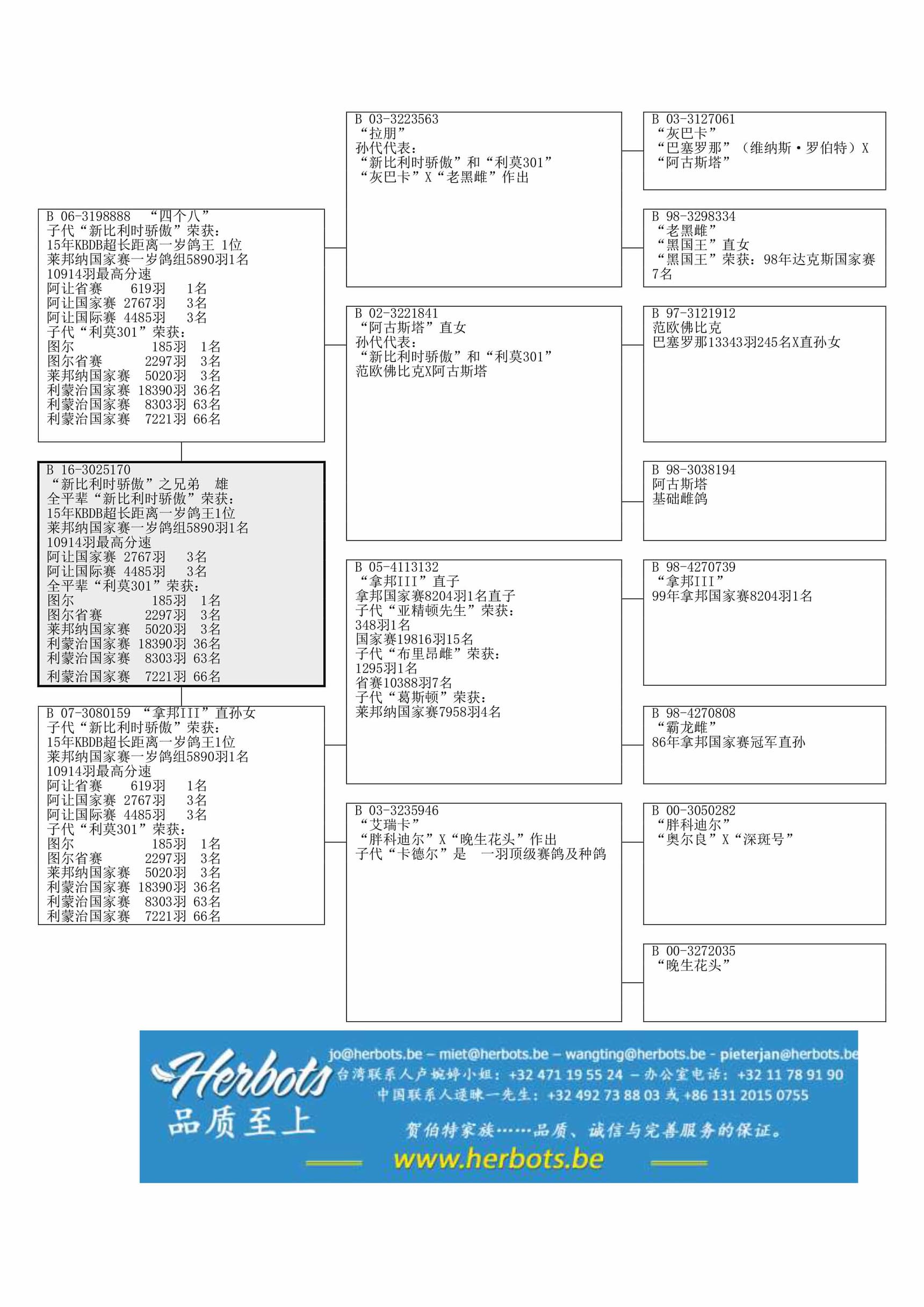 全平辈“新比利时骄傲”荣获:2015年KBDB马拉松一岁鸽王全国1位 – 莱邦纳国家赛 5,890羽1名 (10,901羽分速最快) - 阿让国际赛 4,485羽3名