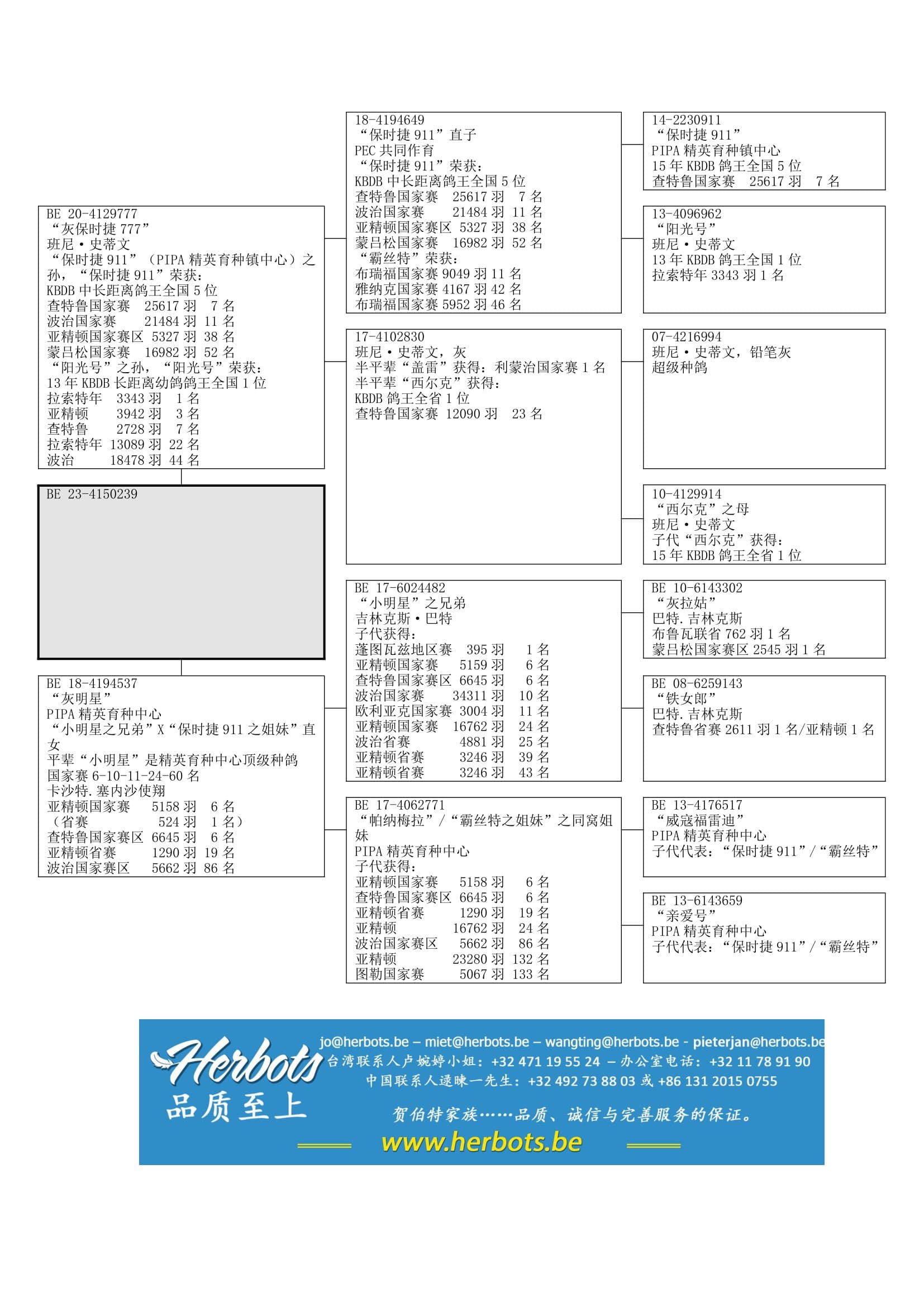 国家赛7次1名以及几羽各个级别赛事的顶级冠军赛鸽