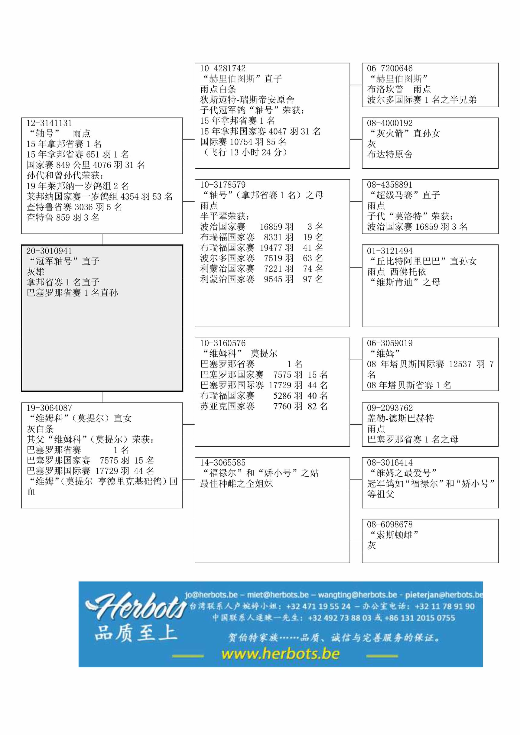 “赫里伯图斯直子” (狄斯迈特-瑞斯帝安原舍) x“B10-317879” (半平辈荣获:波治国家赛 16,859羽3名, 布瑞福国家赛 8,331羽19名, 布瑞福国家赛 19,477羽41名, 利蒙治国家赛 7,221羽74名, 利蒙治国家赛 9,45羽97名) 直子