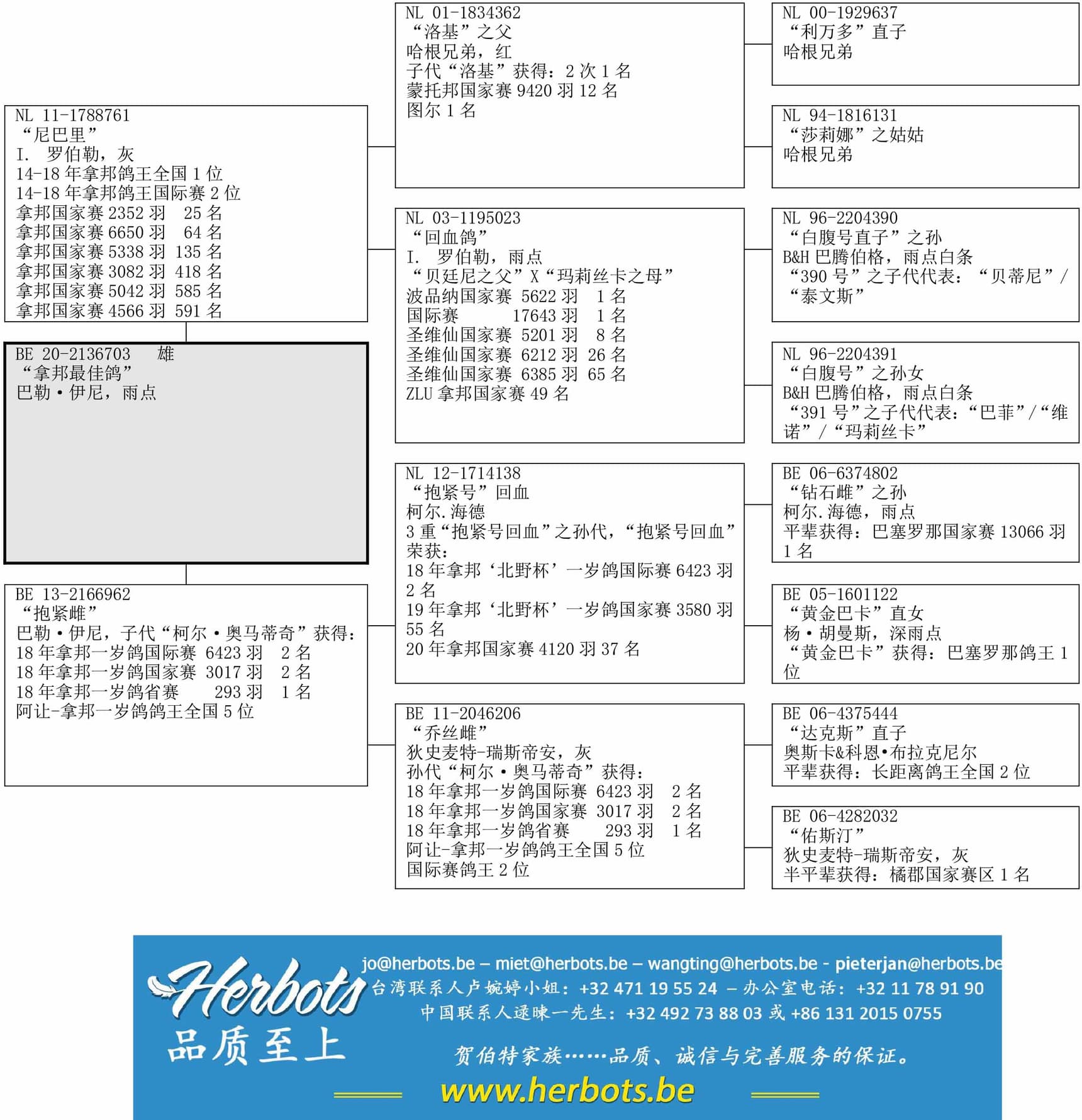 “洛基之父”(2次1名--蒙托邦国家赛9420羽12名)X “NL13-1195023”(种鸽鸽系:波品纳国际赛17643羽1名)作育