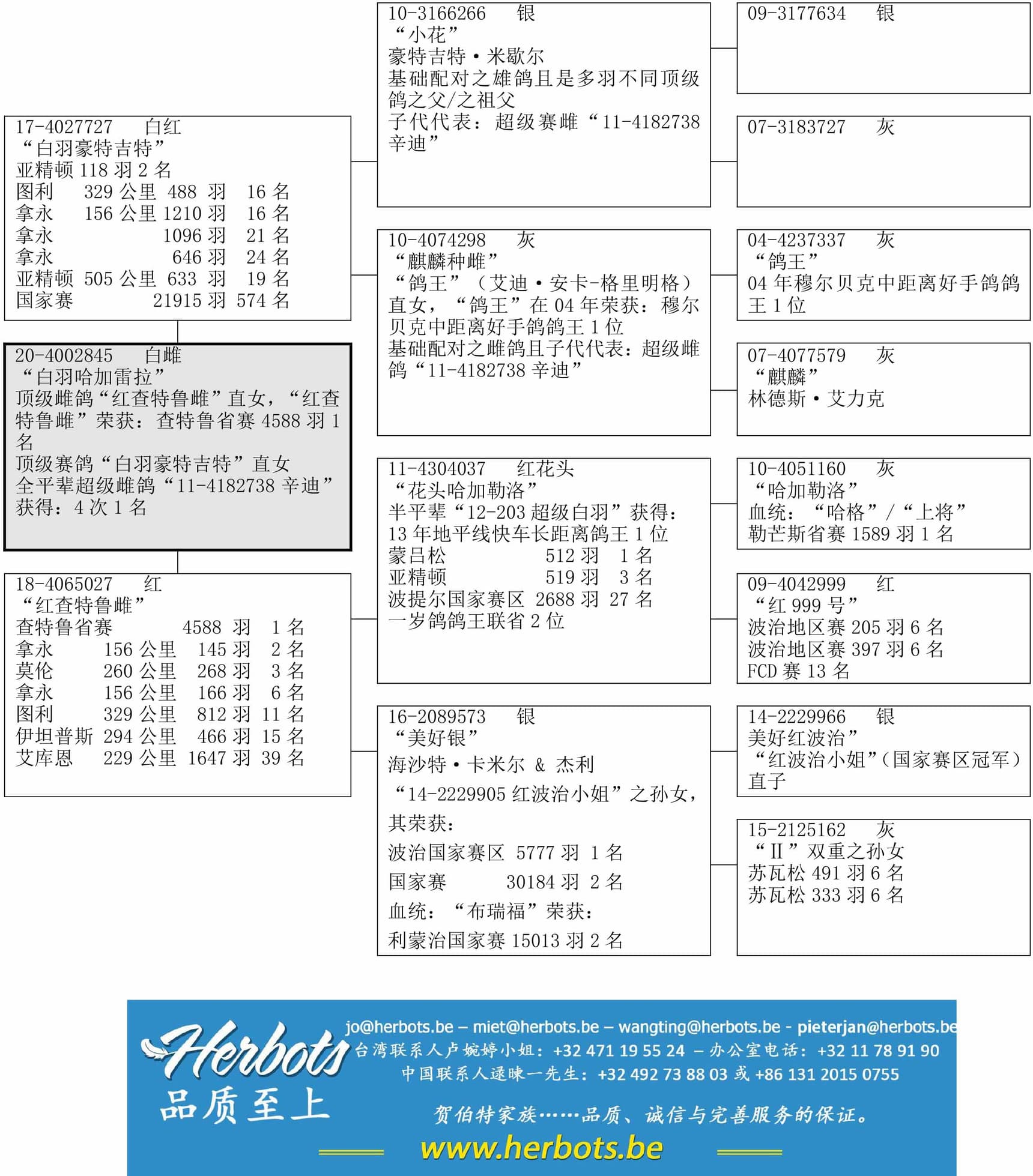 “花头哈加雷拉”(顶级鸽“12-203”之半兄弟)X“美好银”作育