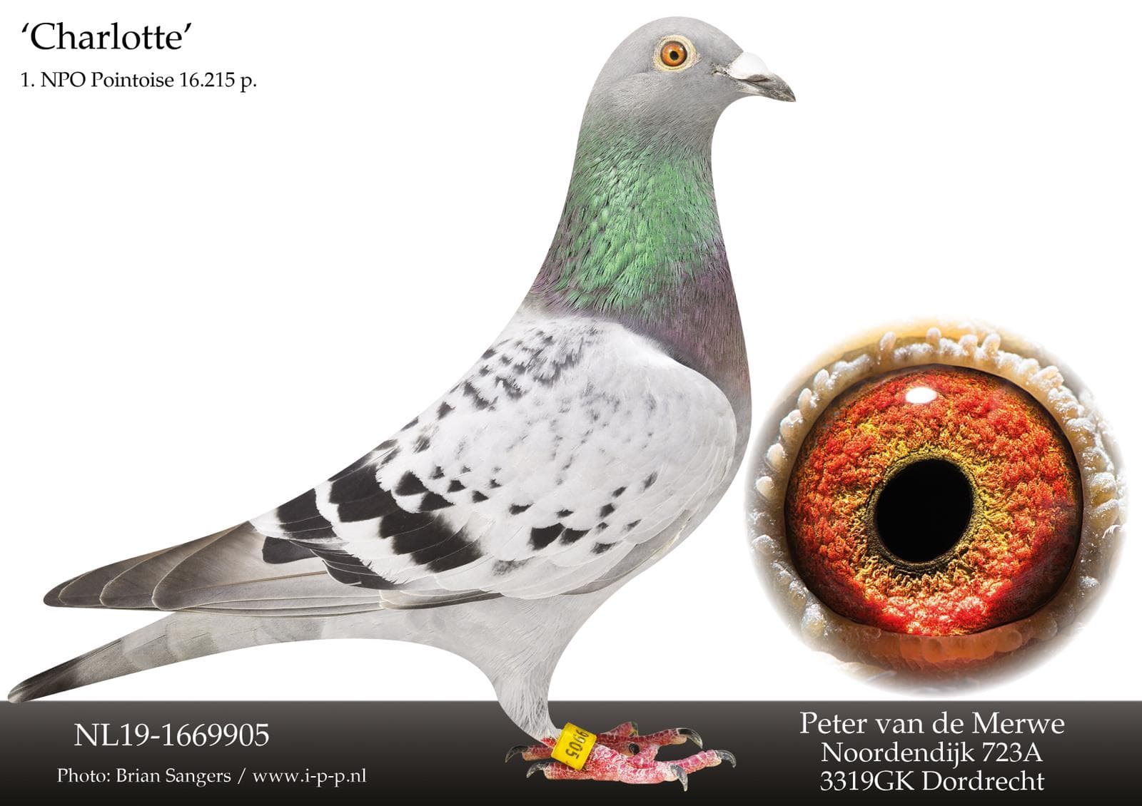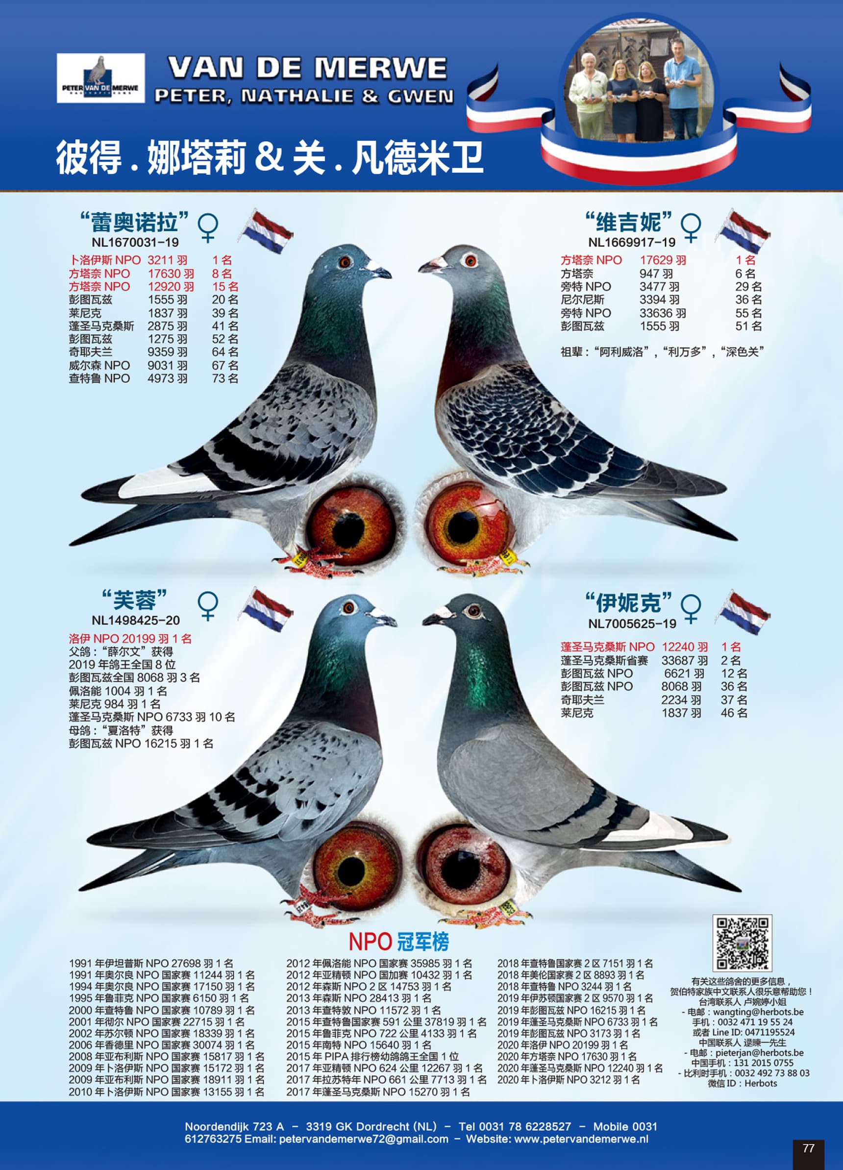 “NL15-1708689” 是“马歇尔”(NPO布鲁瓦13156羽1名)X“娜塔莉”(NPO香提利30074羽1名)作育直女