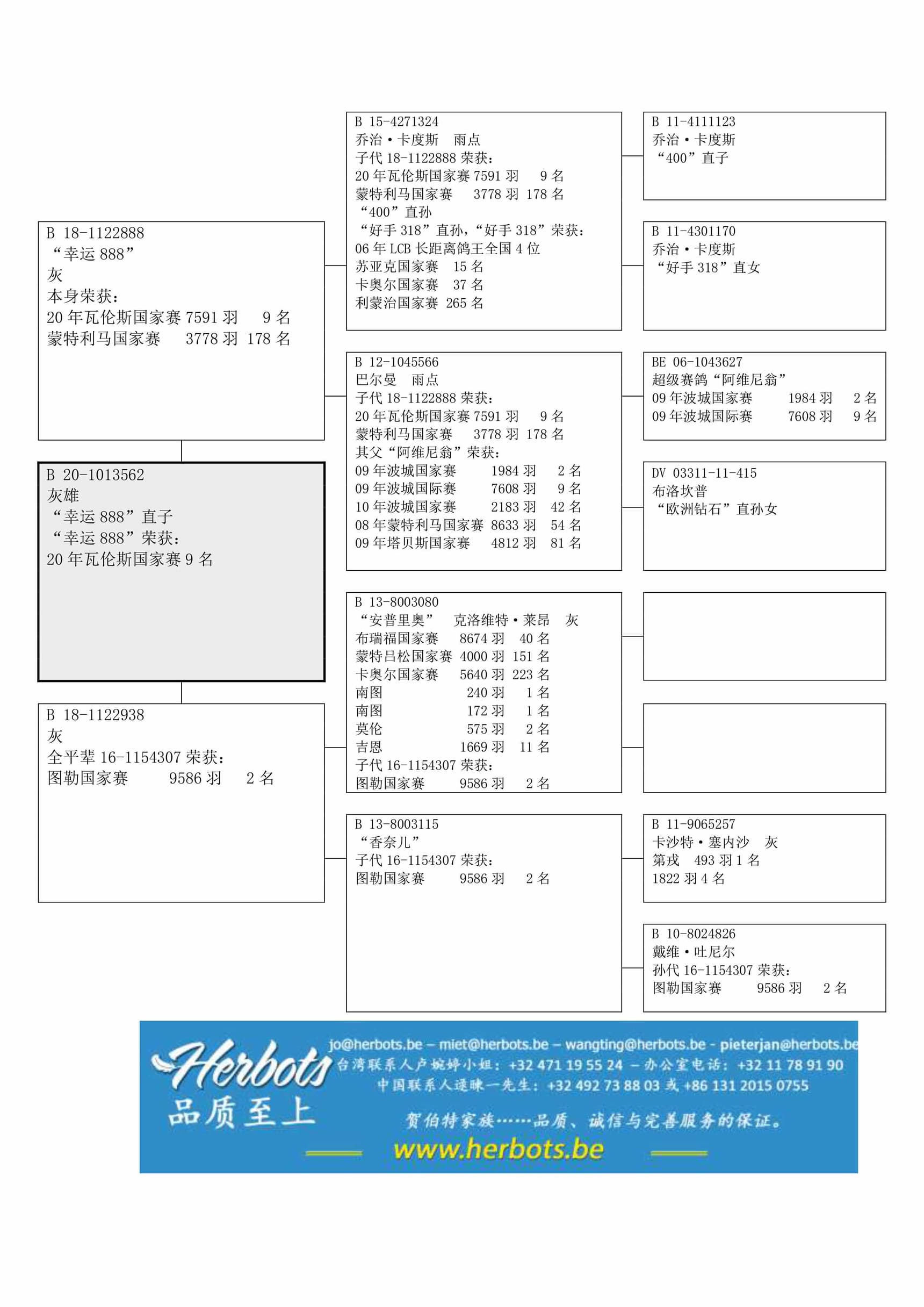 “B15-4271324” (卡度斯原舍- “400”直孙 – KBDB鸽王全国4位的“好手318”直孙) x “B12-1045566” (巴尔曼原舍 – “阿维尼翁”直女,“阿维尼翁”荣获: 波城国家赛2名/国际赛9名) 作出