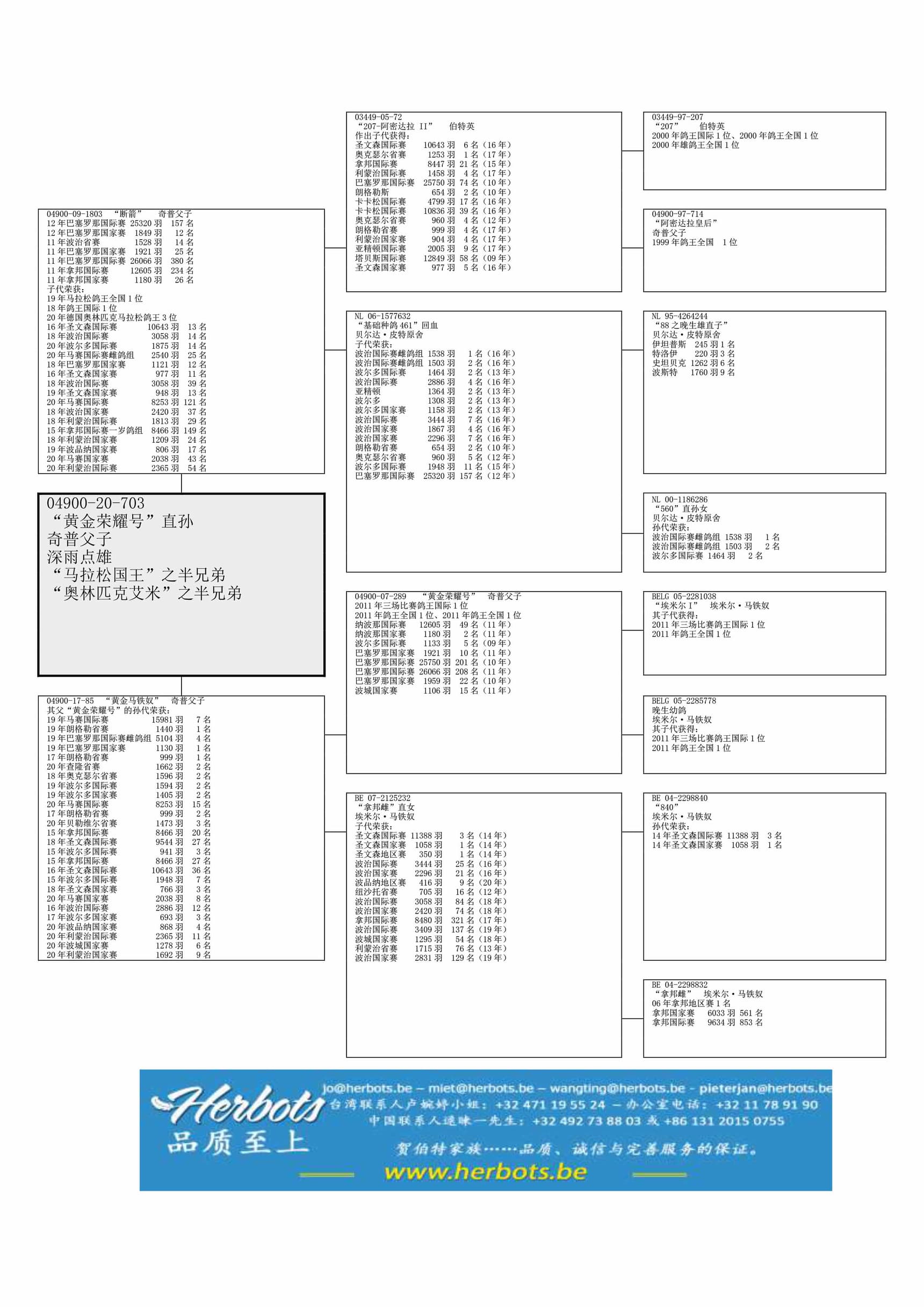 同母半平辈荣获:圣文森国家赛 1,058羽1名 - 圣文森国际赛 11,388羽3名 – 波治国际赛 3,444羽25名 - 波治国际赛 3,058羽84名 – 拿邦国际赛 8,480羽321名