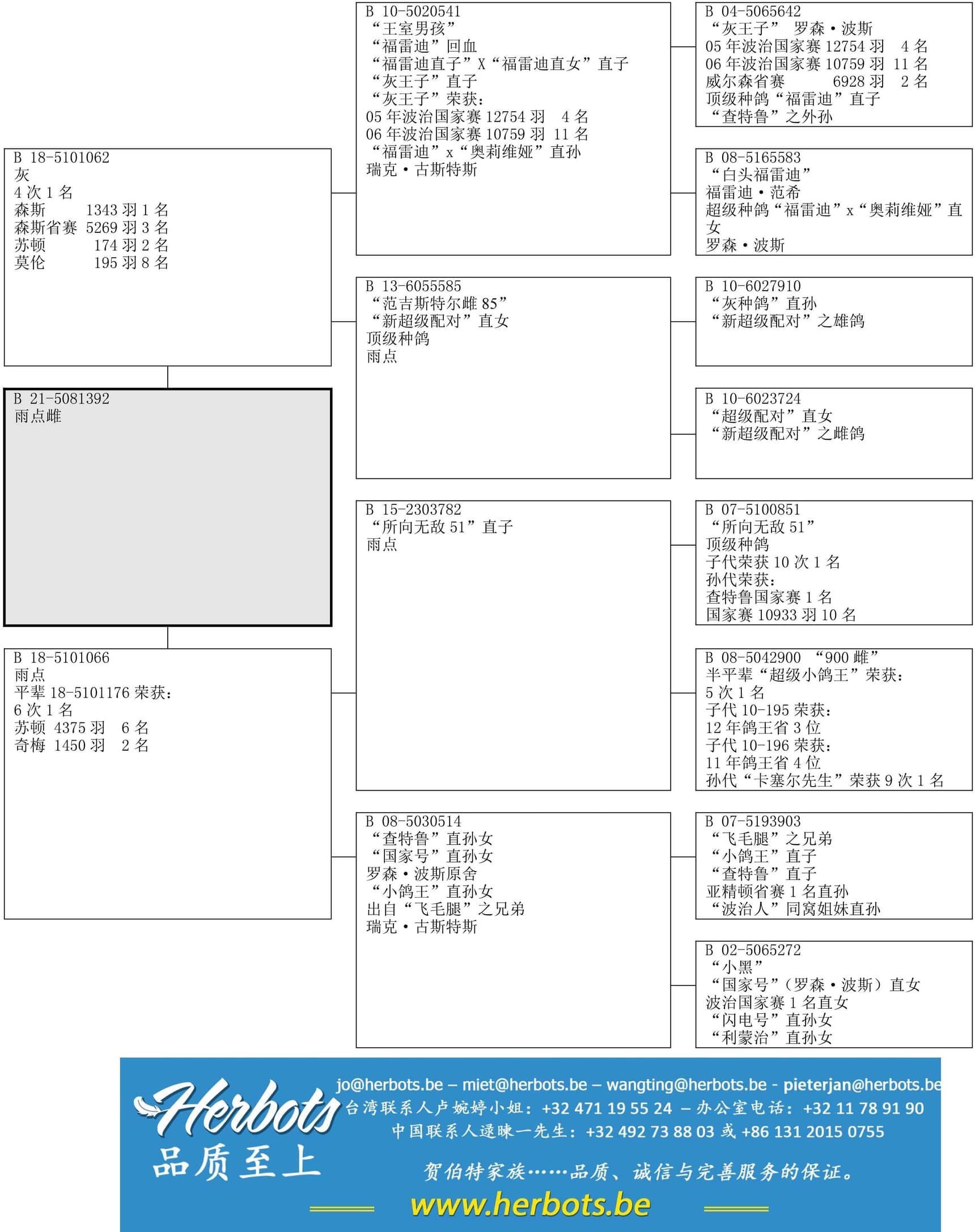 “所向无敌 51” (10羽不同的子代荣获1名) x “900-雌” (半平辈“超级小鸽王”荣获 5 次1名) 直孙女