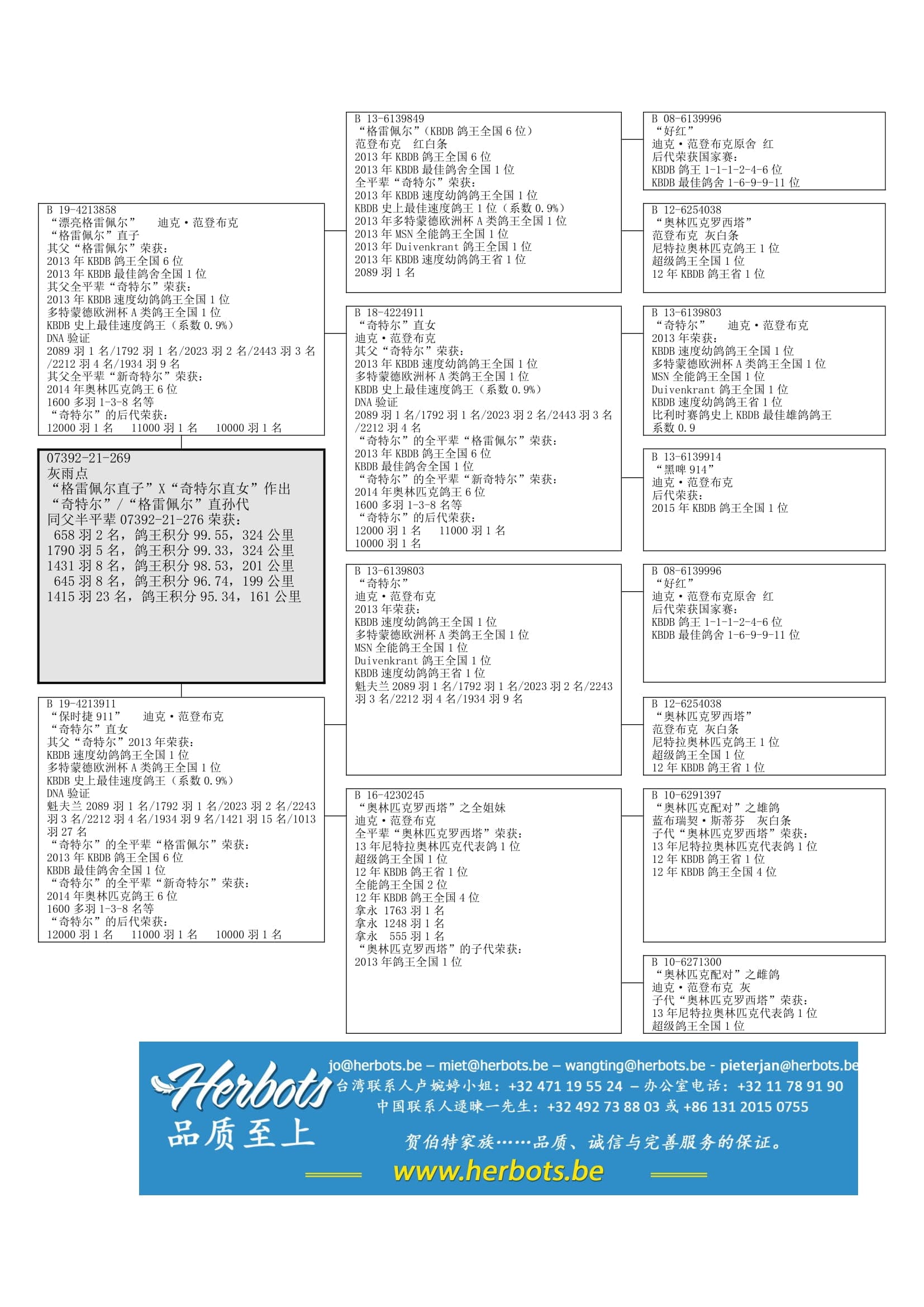 KBDB鸽王全国15位), “金粉” (作出 NPO鸽王全国3位), “黄金奇特尔” (作出 KBDB鸽王全国16位)