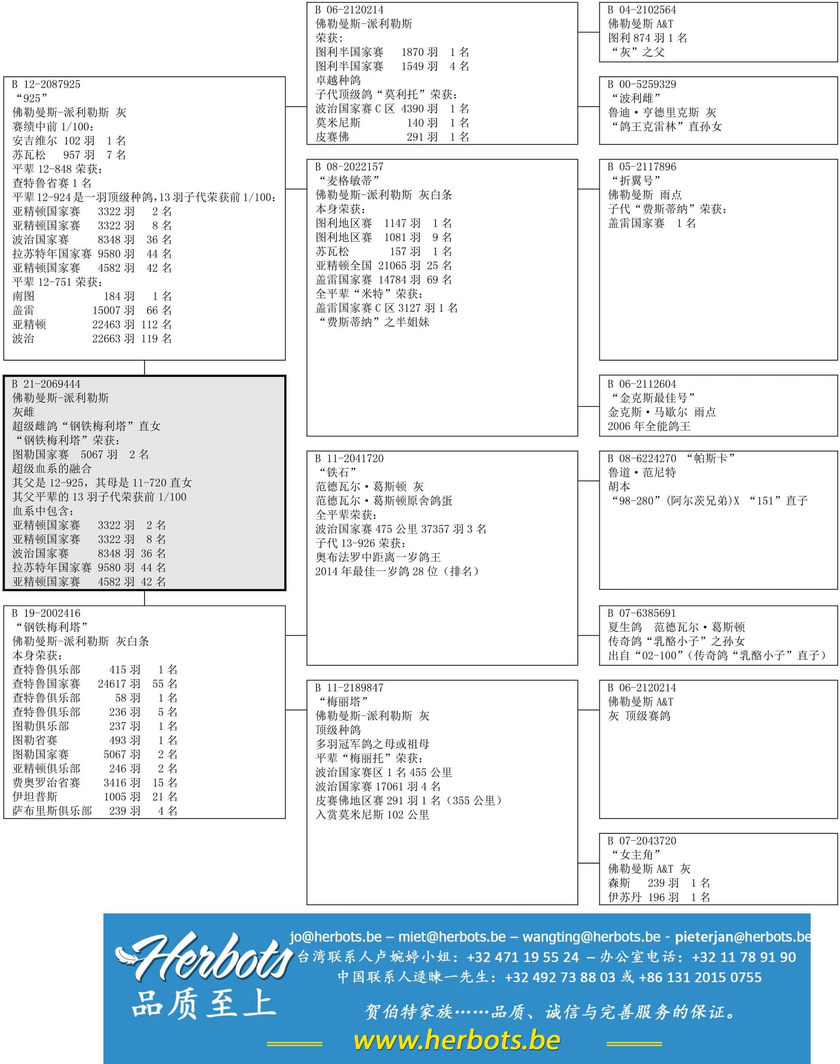 全平辈代表及佳绩: 查特鲁省赛1名;“751-12” (南图184羽1名 – 盖雷国家赛15,007羽66名) ;“924-12”(冠军种鸽)