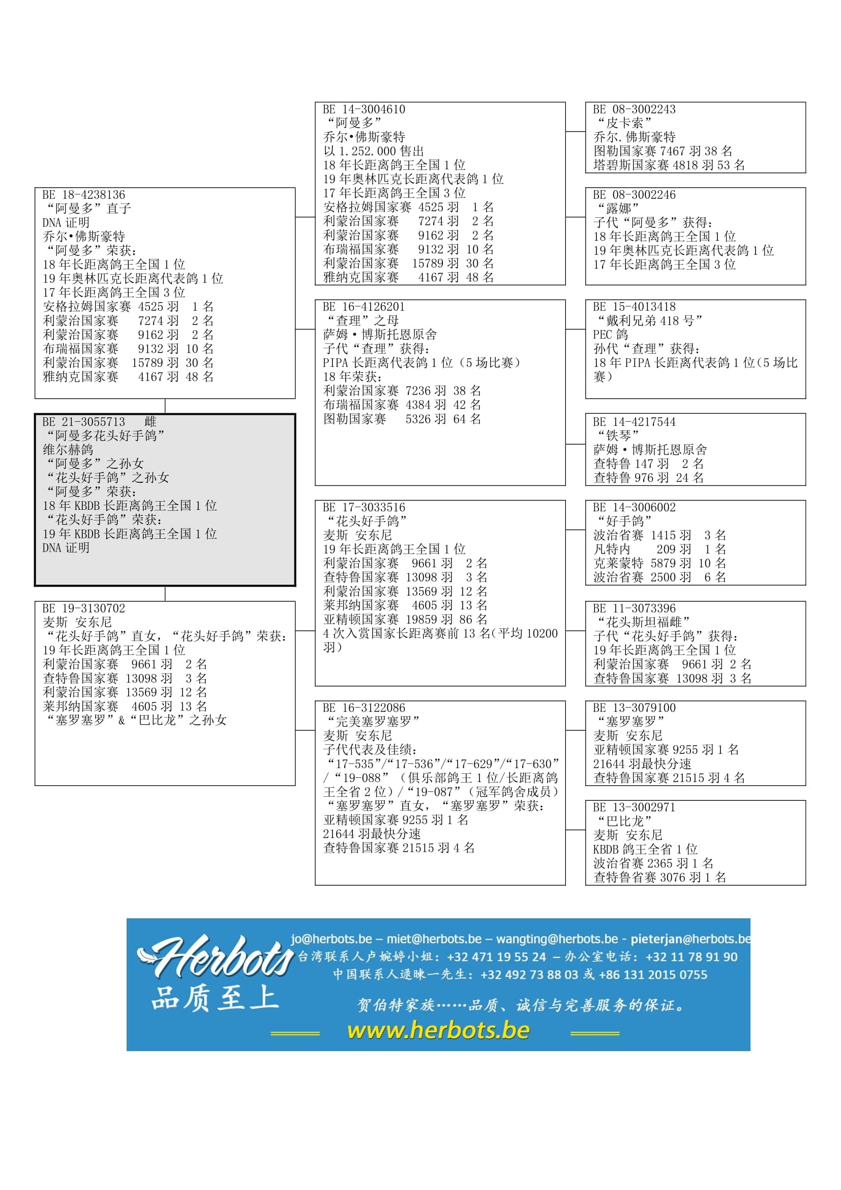 作育者: VELGHE PIGEONS 维尔赫信鸽