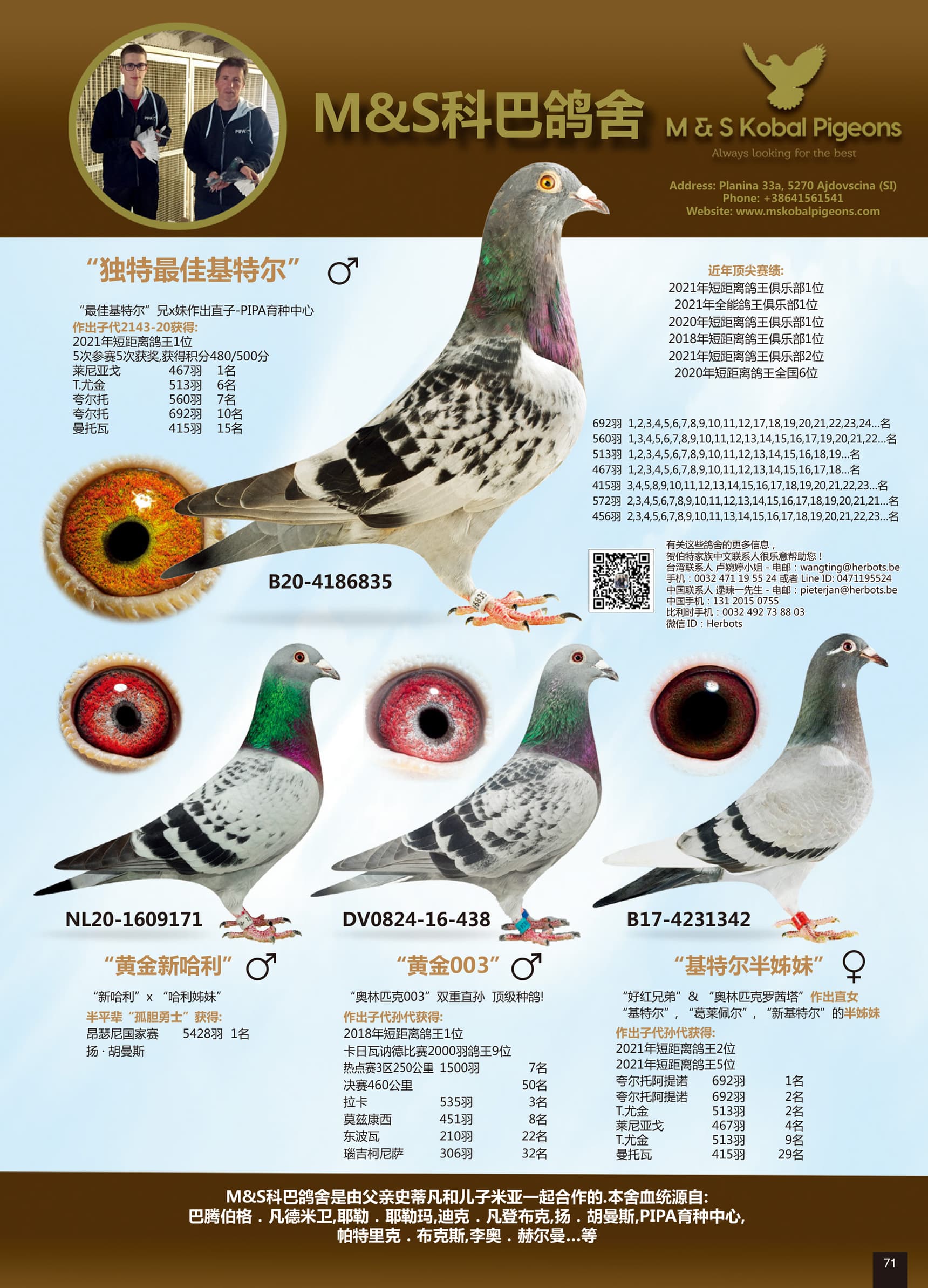 2,089羽1名 – 1,792羽1名 – 2,023羽2名 - 2,443羽3名  – “奇特尔”的后代在全世界各种比赛中获得无数冠军