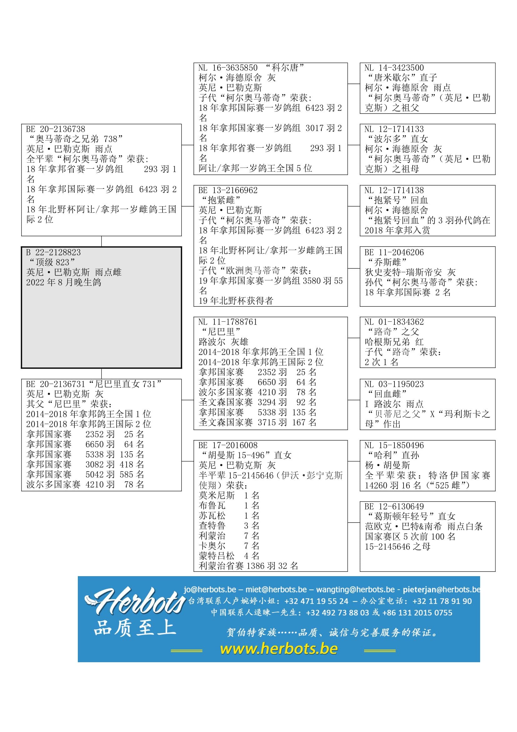 拿邦省赛1名/拿邦国际赛一岁鸽组6,423羽2名