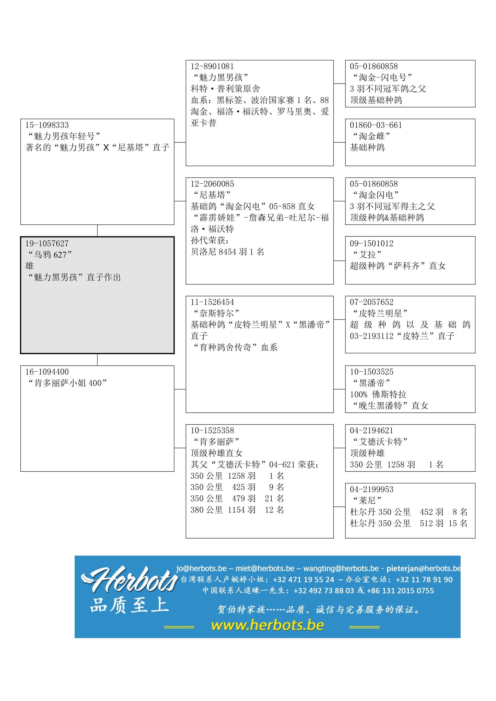 “奈斯特尔” (基础种鸽“皮特兰”直孙) x “黑潘帝” (“律师”直女,“律师”荣获:1,258羽1名 – 425羽9名 – 等等)直女