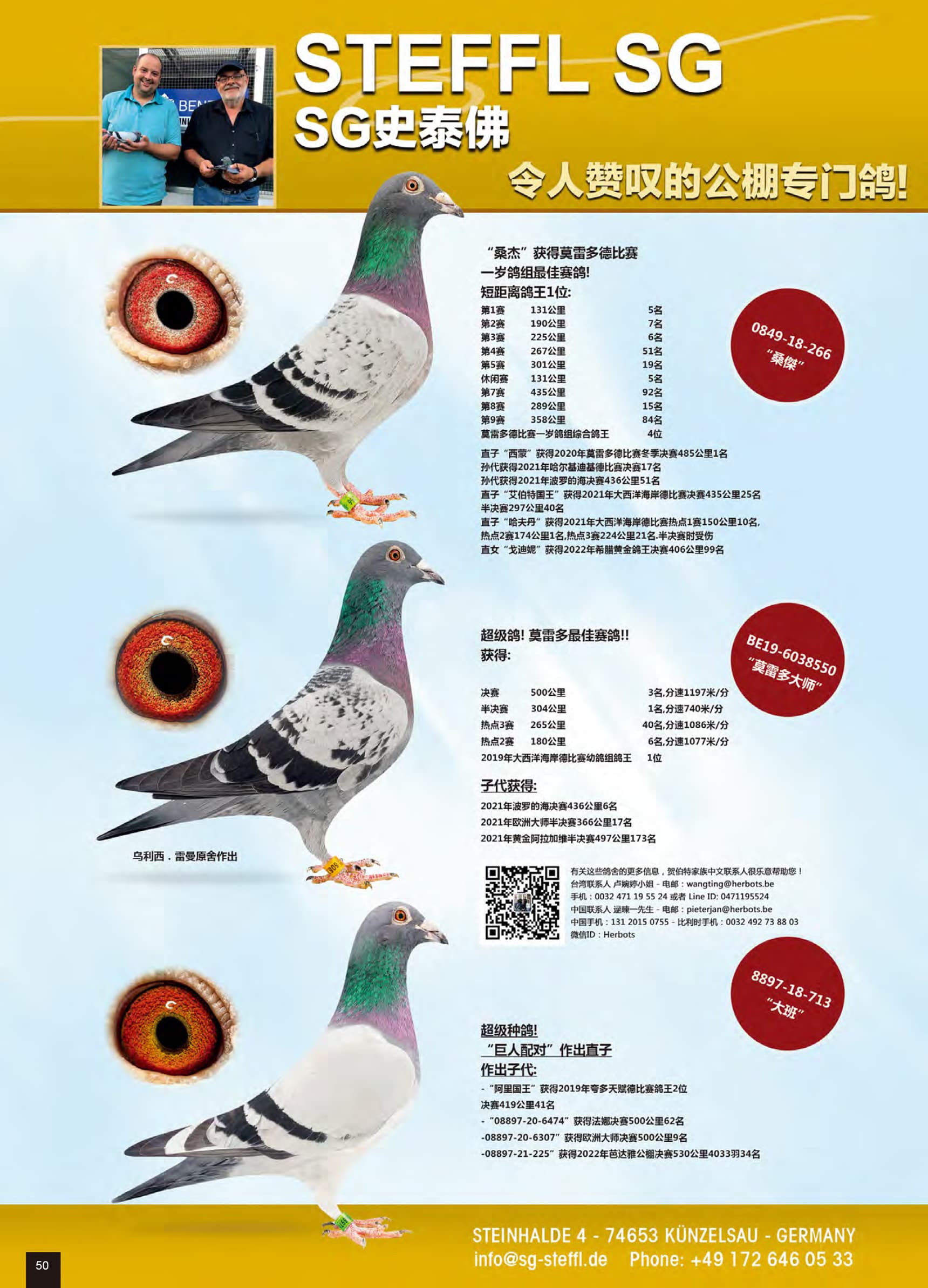 荣获莫勒多公棚赛: 决赛3名500公里 - 半决赛1名 304公里 – 热点 III 40名265公里- 热点 II 6名180公里 -