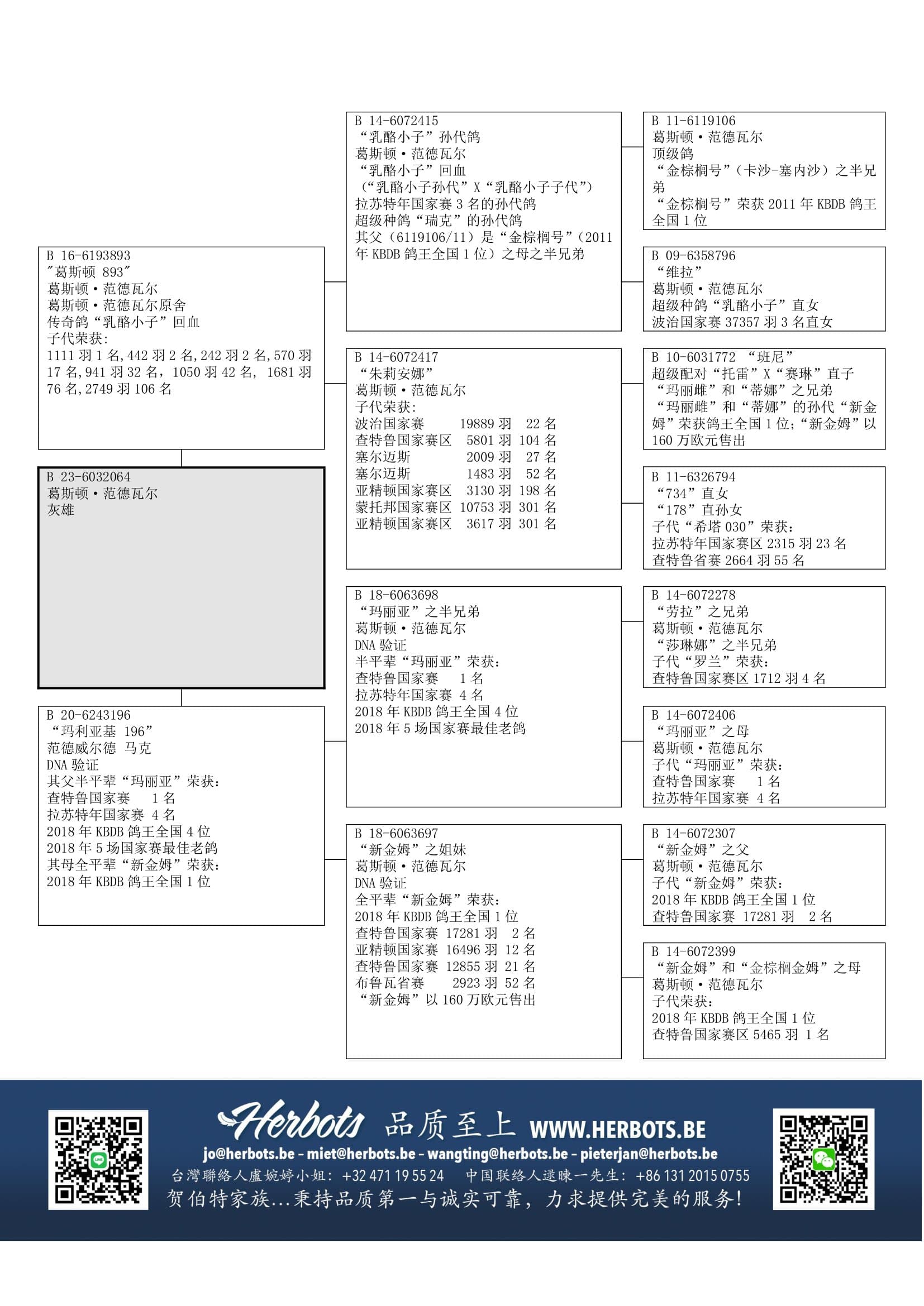 “顶级鸽” (“金棕榈”之母之半兄弟)x “薇拉” (波治国家赛 37,357羽3名直女) 直子