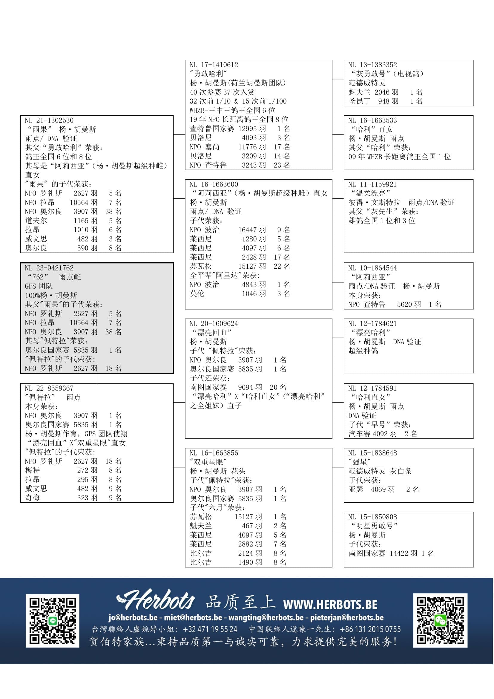 “漂亮回血” (出自“漂亮哈利” x 他的姐妹) x“双重星眼” (子代荣获苏瓦松 15,127羽1名) 直女