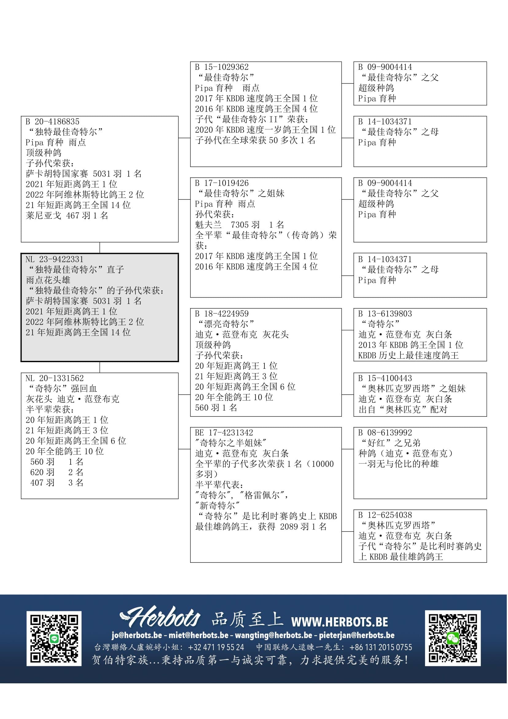 “B17-1019426” - 传奇鸽“最佳奇特尔”之全姐妹