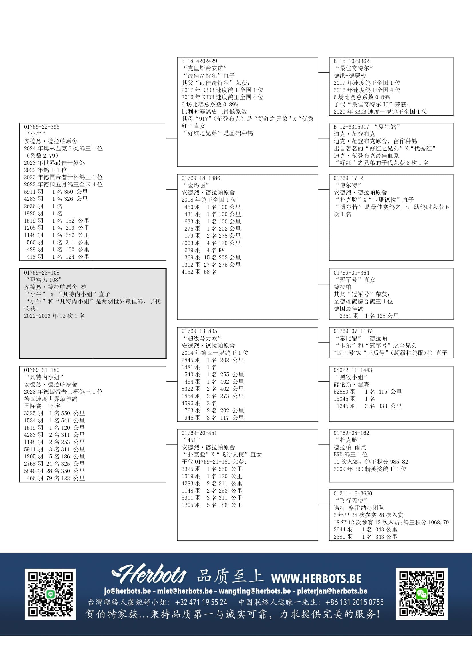 “夏生鸽” B12-6315917 – 迪克·范登布克原舍