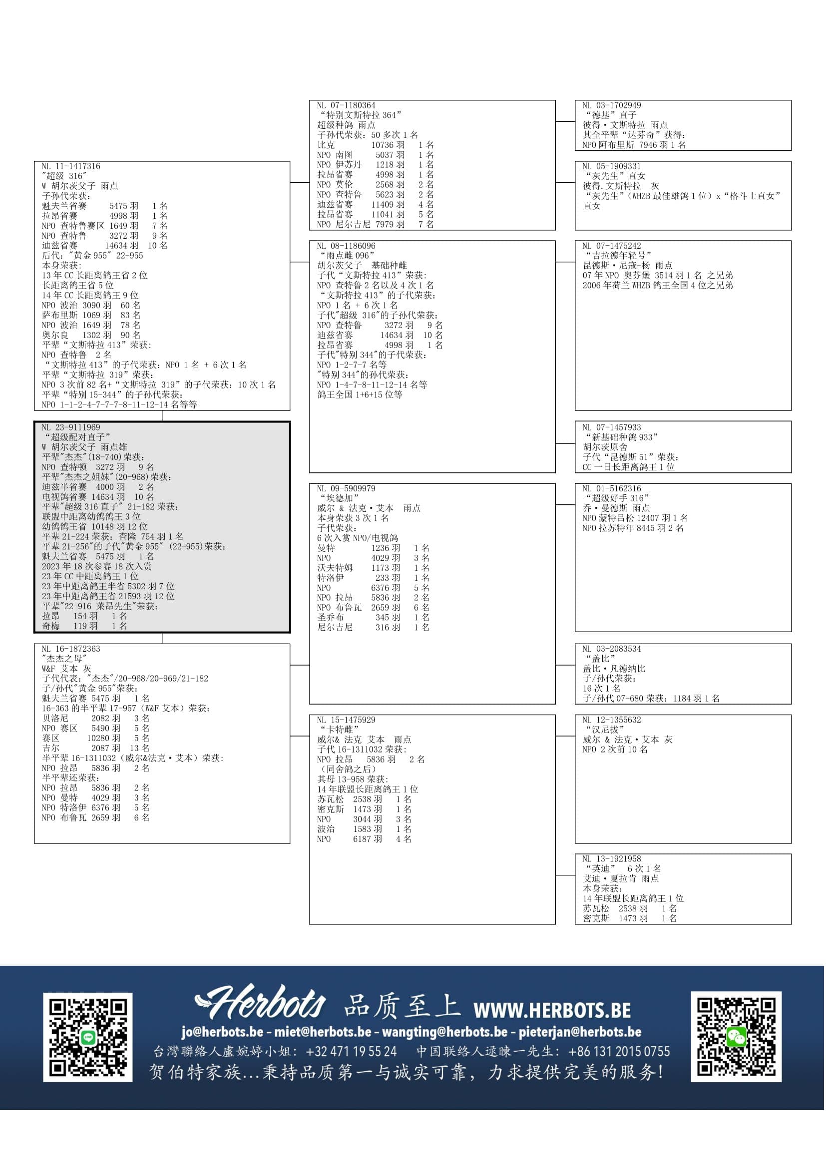 “文斯特拉 319” (NPO  3次前82名;子代荣获10 多次1名) 以及