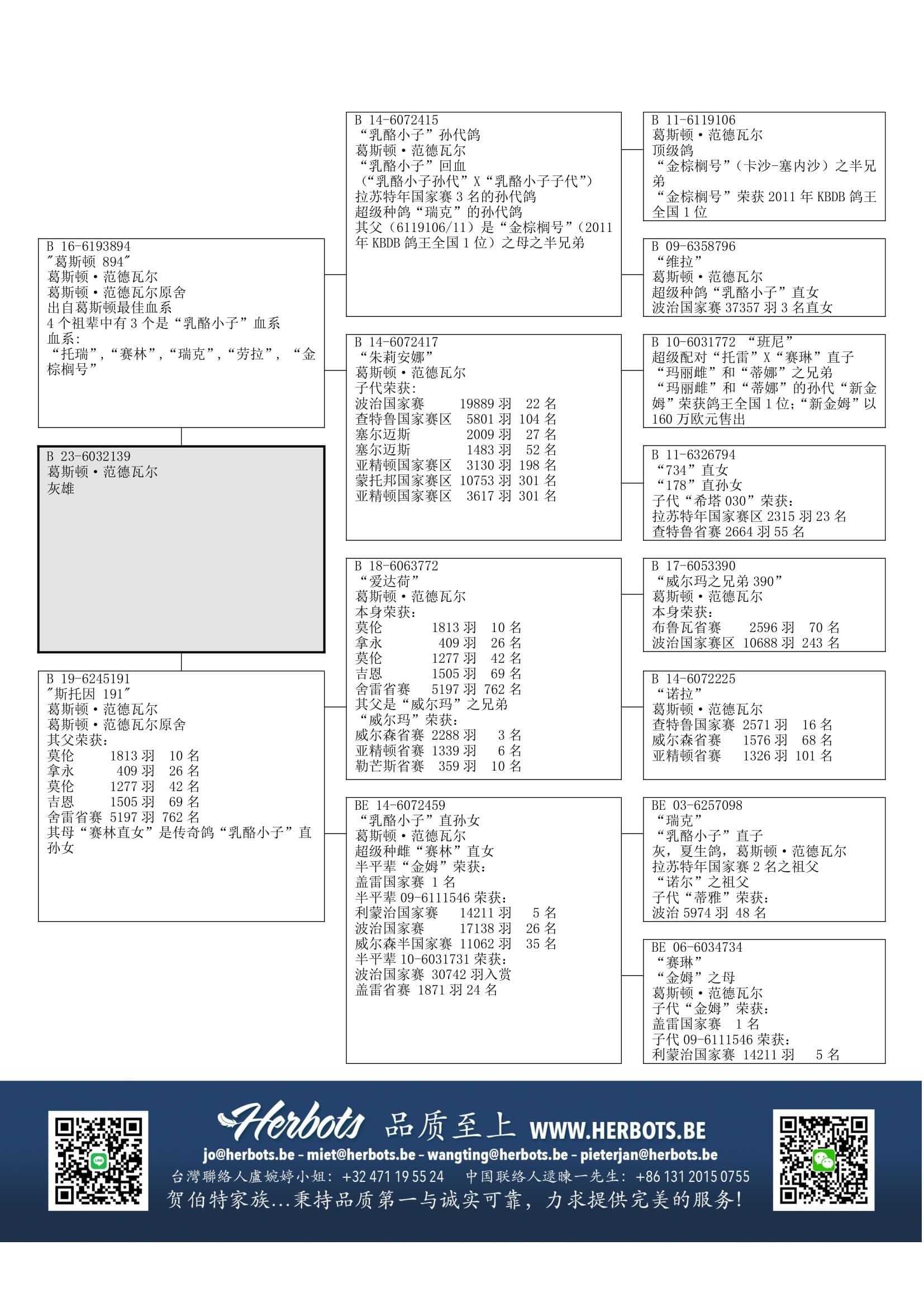 “顶级鸽” (“金棕榈”之母之半兄弟) x “薇拉” (波治国家赛 37,357羽3名直女) 直子