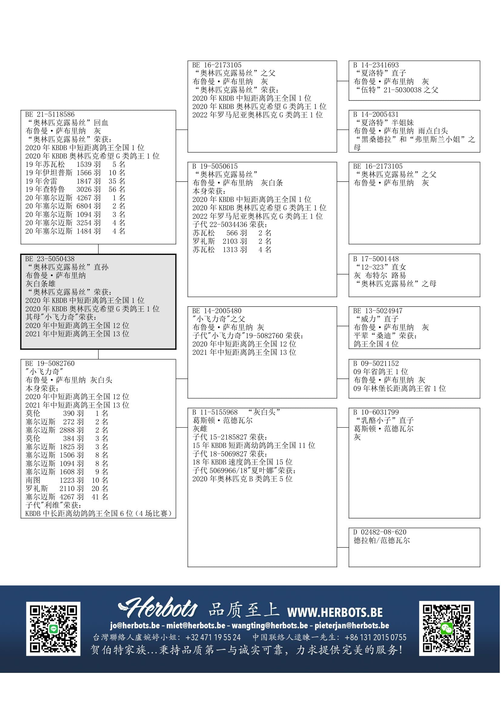 其祖辈荣获:2020年KBDB中距离鸽王全国