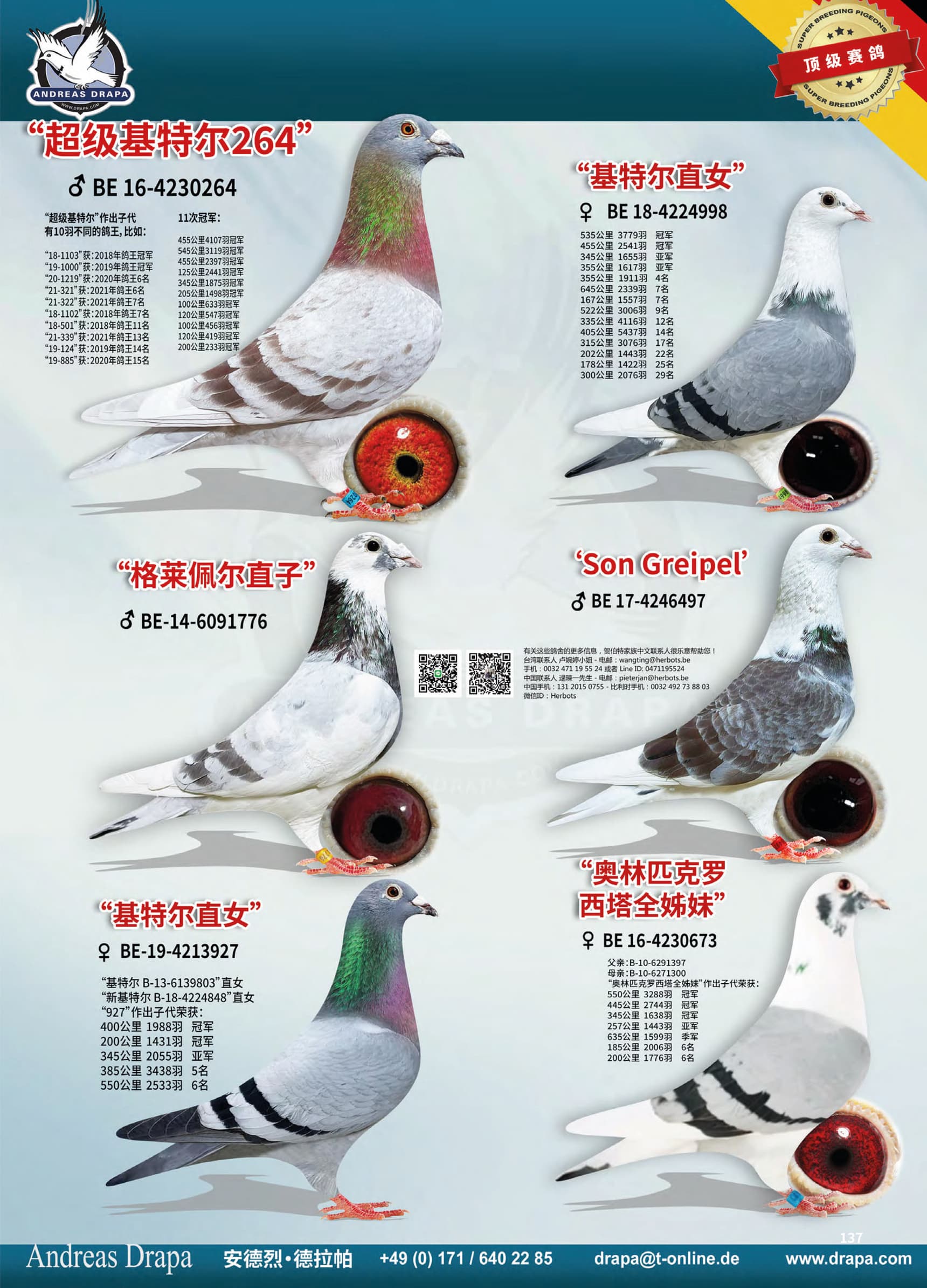 世界铭鸽“冠军号”(鸽王全国1位)X“德国最佳号”直女