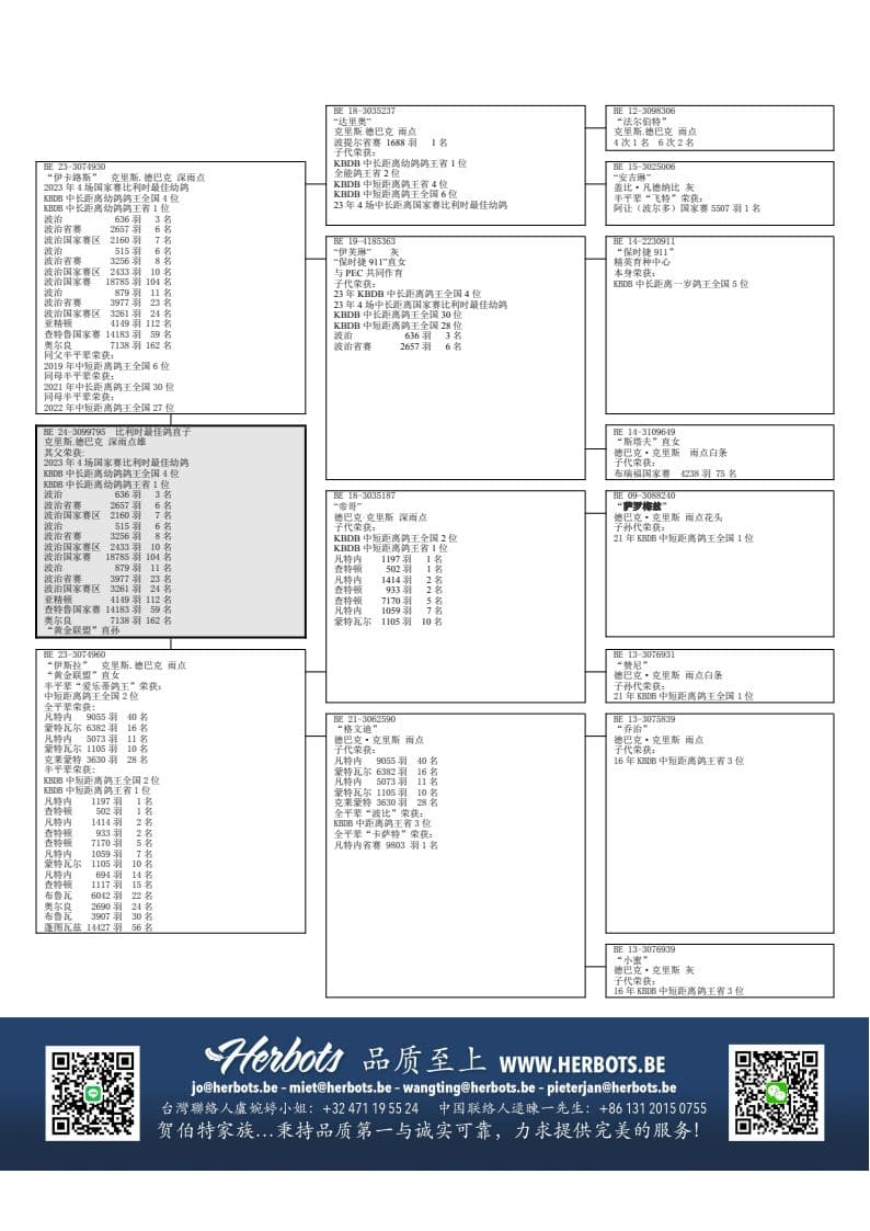 荣获: 23年4场国家赛比利时最佳幼鸽