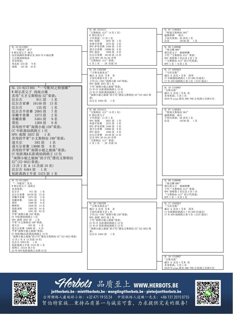 仅在幼鸽时参赛以及24年6次参赛 – 荣获: